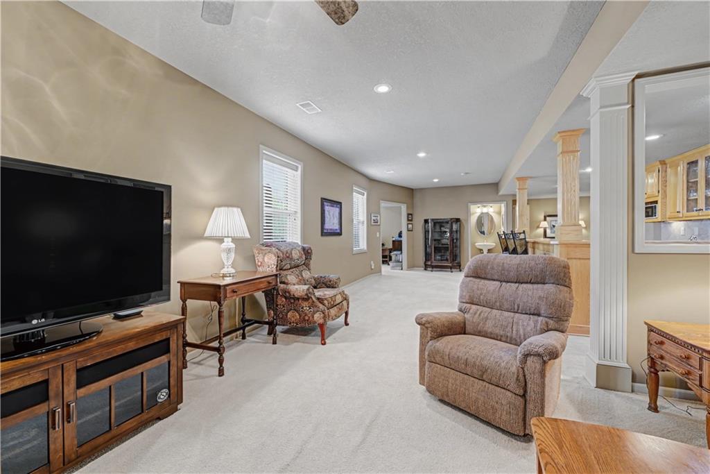WELCOME TO MAINTENANCE FREE LIVING! This Beautiful Home in the highly desirable 55+ community of Fountains at Raintree boasts 3 Bedrooms and 2 Full Bathrooms on the main floor plus a large finished walkout lower level that opens onto a private patio. This can be your new dream home to relax, entertain, and enjoy your next chapter! UPGRADES include newer hardwood floors in kitchen, a NEW roof, NEW sump pump, newer AC, NEW comfort height toilets in main level bathrooms and MORE! The Beautiful tiled entry hall opens to a cozy great room with tiled surround fireplace and a formal dining space just waiting for your next holiday gathering. The main-level primary suite has a walk-in closet, custom tile work, dual vanities, and a spacious shower and separate jetted tub. The kitchen is smartly designed with generous counter space, ample storage, and a bright eat-in dining area that opens directly to your deck. Head downstairs to find your dream relaxation and entertainment zone: to include an office, family room, gaming area, 3rd full bath plus a 2nd kitchen/ wet bar! The oversized two-car garage with epoxied floor seals the deal with plenty of parking and storage. Located in The Fountains at Raintree, a premier 55+ community, your lawn care, irrigation, snow removal, and trash are all covered by the HOA, while enjoying all the amenities of Raintree Lake, including the private 235-acre lake with pontoon rentals, a zero-entry Olympic-sized pool, over 7 miles of walking trails, and two clubhouses. Ready to love where you live? Hurry and view this amazing home today!