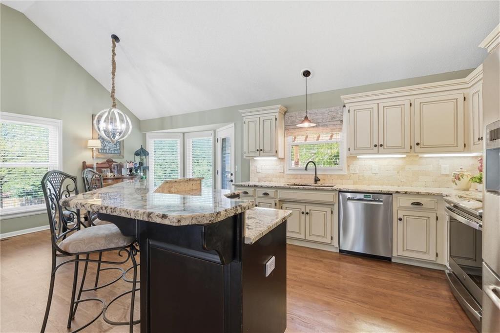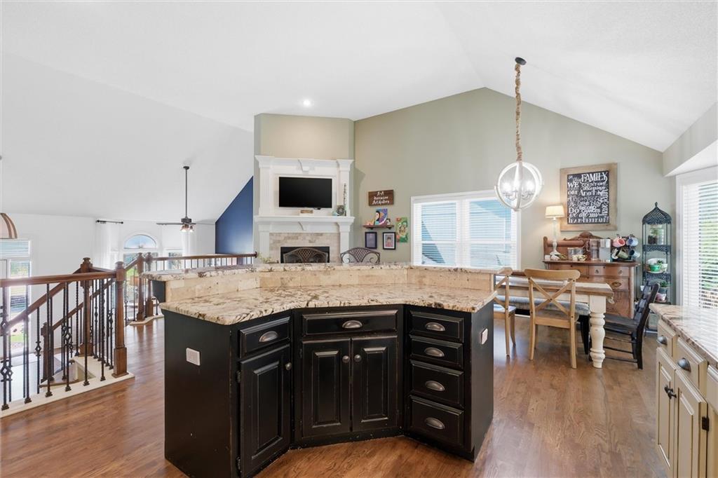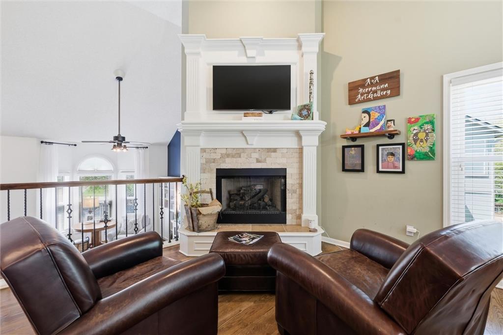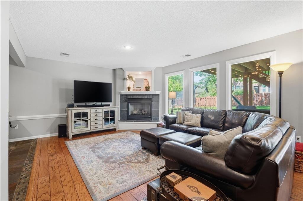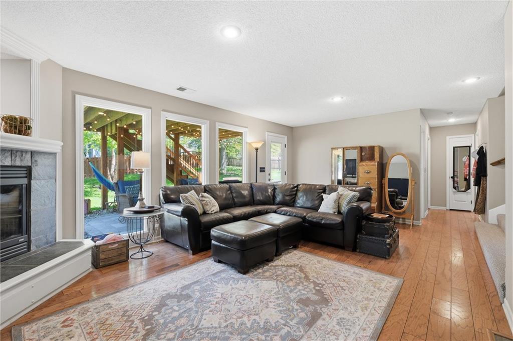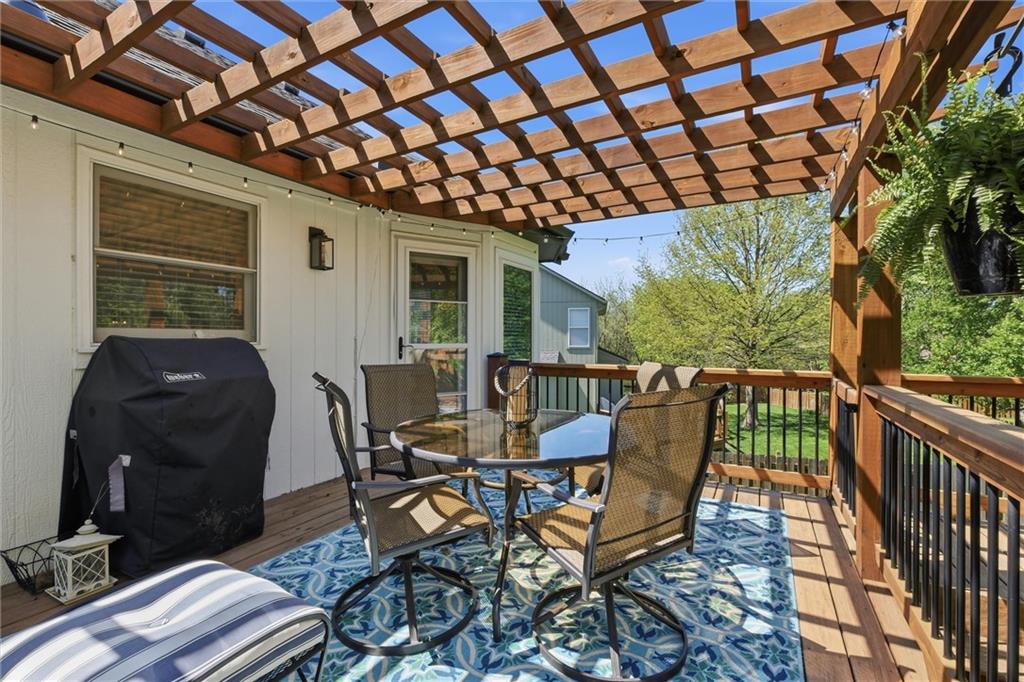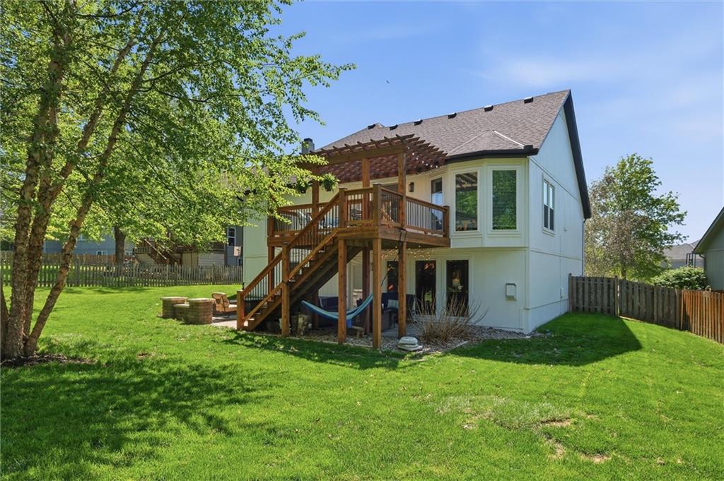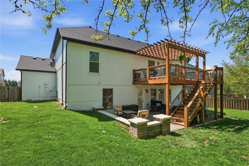 Welcome home to this move-in ready home situated on a quiet cul-de-sac and packed with updates inside and out! This beautifully maintained home offers peace of mind with a long list of recent improvements and designer touches including a new roof, gutters, fresh exterior paint, new shutters, new garage doors and professional landscaping in 2024. Newer windows, too! Step inside to find newly refinished hardwood floors, fresh interior paint and new stair carpeting. The main level has a spacious kitchen with professionally painted cabinetry, a walk-in pantry with a custom barn door and upgraded appliances. This home features TWO cozy fireplaces, perfect for relaxing evenings and entertaining. The walk-out lower level provides great natural light in the large second living space that features a wet bar. Lower level also has two bedrooms and the 3rd full bathroom. Step out back to a very spacious, professionally designed, partially covered patio, fenced yard and deck with pergola. This home is within walking distance to the neighborhood swimming pool and tennis courts and the newly designed Garrett Park. Located in the highly sought De Soto school district. This one is gorgeous and a must see!