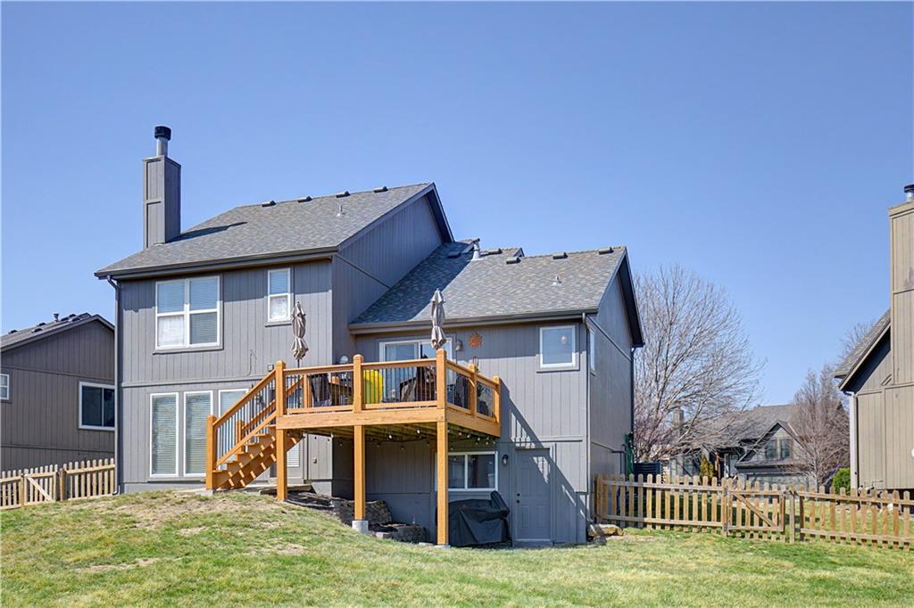 ABSOLUTELY THE BEST BACKYARD IN OLATHE! SAME Backyard as Next Door Neighbor recently SOLD for $432k. QUARTER ACRE, FENCED and NO-NEIGHBOR VIEW, backs to open field. THIS UPGRADED 3BR HOME has TONS OF NEW: NEW FENCE, NEW ROOF, NEW AIR CONDITIONER, YOUNG EXTERIOR PAINT & NEWLY RESTAINED & RESTORED DECK. LOTS TO OFFER with this CLEAN and TIDY, MOVE-IN-READY Home with Incredible PRIVACY and LARGE BACKYARD!! Lots of Stylish touches with Hard Surface, TILED BATHROOMS, TILED LAUDRY ROOM and Modern Colors to match. WALK-IN CLOSETS & TWO SEPARATE LIVING SPACES for ADDED VALUE. Hurry!! THIS IS PRICED TO GO QUICK!!