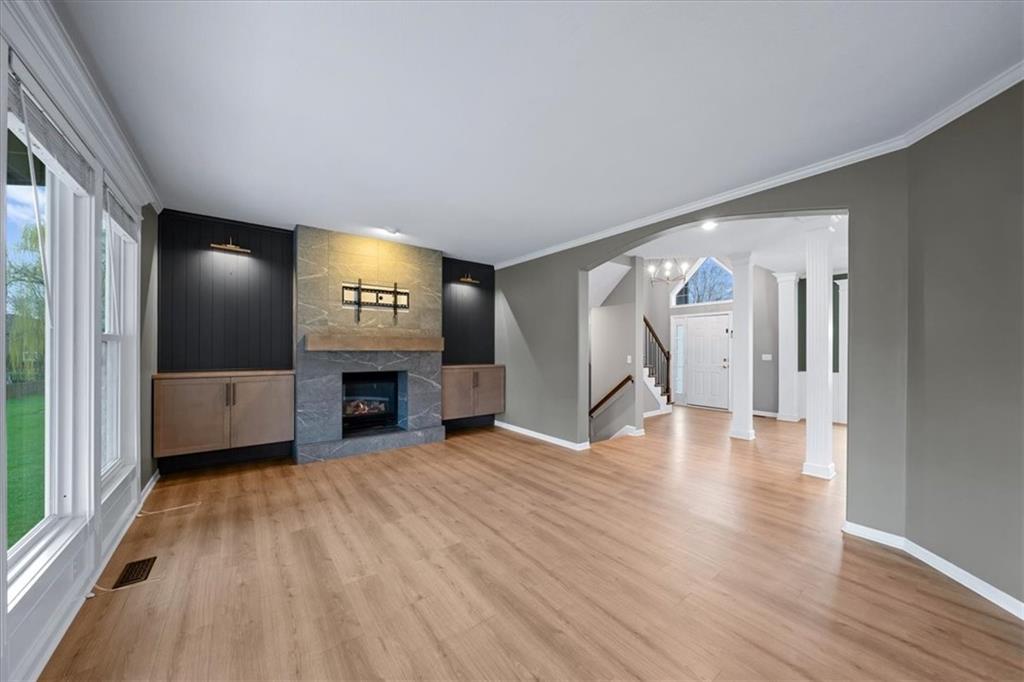 Hurry to see this beautifully updated home with 3-car garage, 4 bedrooms & 3-full bathrooms upstairs, conveniently located near Lee’s Summit and Blue Springs! From the moment you enter, you’ll notice the newer engineered wood floors, stunning arched doorways, and the updated fireplace wall in the family room. The home feels open and airy with a dramatic two-story entry and floor-to-ceiling windows that fill the space with natural light. All bedrooms are generously sized and feature private bathrooms and walk-in closets, offering comfort and privacy for everyone. The spacious kitchen includes an island, informal dining area, and pantry—perfect for everyday living and entertaining. A major bonus is the natural gas–powered automatic whole-home generator, providing peace of mind year-round. The finished lower level features unique stained concrete flooring, solid maple cabinetry, solid surface countertops, a half bath, and a large living area ideal for recreation, entertaining, or relaxing. Step outside to an extra-large fenced yard located on a quiet cul-de-sac. Enjoy the covered patio, firepit, and one of the largest and most beautiful yards in the neighborhood—perfect for outdoor gatherings and summer evenings. Residents also enjoy access to the neighborhood pool, making this home the perfect place to relax and enjoy the seasons.