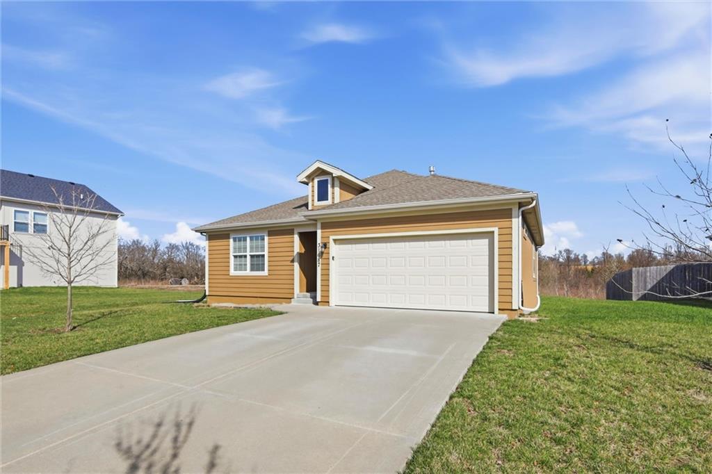 Built in 2018, this contemporary ranch-style residence is designed for the modern family, featuring an efficient and inviting floor plan that spans approximately 1,510 square feet of living space. From the moment you pull into the attached two-car garage, the home's meticulous maintenance and curb appeal in the St. John’s Highlands neighborhood make a lasting first impression. The interior of the home is bathed in natural light, highlighting a neutral and soothing color palette that complements any décor style. The heart of the home is a spacious, open-concept kitchen and living area, perfect for busy weekday mornings or relaxed weekend gatherings. The kitchen is a chef’s delight, equipped with elegant wooden cabinetry, ample counter space for meal prep, and a suite of modern stainless steel appliances, including a dishwasher, microwave, and refrigerator. The seamless transition from the kitchen to the dining and living areas ensures that the cook is always part of the conversation.With three well-appointed bedrooms and two full bathrooms, there is plenty of room for everyone to find their own corner of comfort. The primary suite serves as a private retreat, complete with a generous closet and an ensuite bathroom featuring dual sinks and a classic bath/shower combination. The additional two bedrooms are versatile, making them ideal for children, guests, or a dedicated home office. For those needing extra storage or a future recreation space, the large basement provides a blank canvas to expand your living area to suit your family's unique needs.Stepping outside, the 0.18-acre lot offers a manageable yet spacious backyard, providing an open space for children to play, pets to roam, or for hosting summer barbecues under the Kansas sky. Situated in a community known for its family-friendly atmosphere and access to highly-rated Gardner schools, this home provides the stability and convenience families crave.