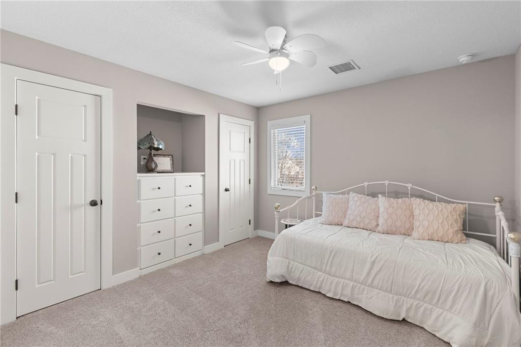 Welcome home to one of the most thoughtfully updated properties in Benson Place Woodchase, located in Shoal Creek Elementary district. Built by the award winning Homes by Chris LLC, this stunning 1.5-story home offers 5 bedrooms, 4.5 baths, and over 3,600 sq ft of finished living space. The main-floor primary suite features a spa-like bath with dual vanities, separate shower, walk in closet and jetted tub, creating a true retreat. The open great room impresses with soaring vaulted ceilings, a cozy fireplace, and newly refinished hardwood floors that flow throughout the main level. The kitchen is a chef's dream with it's pantry, stainless steel appliances and ample cabinet storage. The sellers have invested heavily so you don't have to! Enjoy a brand-new roof (2025), new high-efficiency HVAC (2023), two new water heaters, fresh interior paint, new carpet, stunning new kitchen appliances, and new plank flooring in the primary bath. The exterior shines with a gorgeous composite deck, fence, and enhanced landscaping. The fully finished walk-out basement offers an incredible recreation room and wet bar and unfinished space for a great workout room or for storage! The 3-car garage is spacious. Community perks include two pools, trails, and playground. All of this in the Liberty School District with easy highway access. This one checks every box!