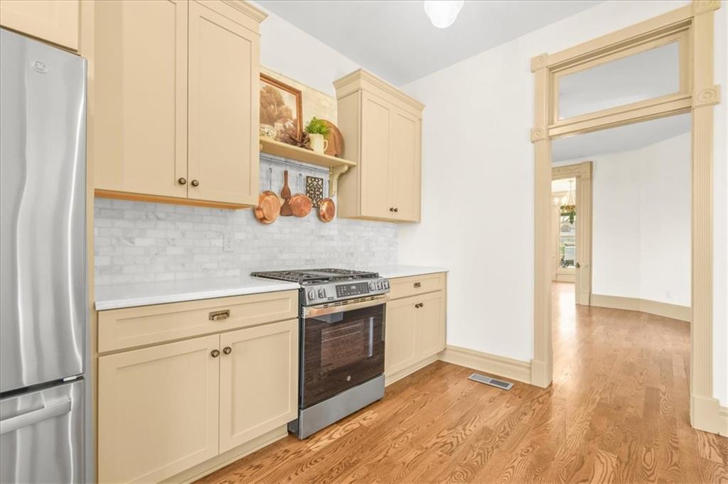 Step into timeless elegance with this beautifully preserved 1880s Victorian offering the perfect blend of historic charm and modern-day updates. This 3-bedroom, 2.1-bath home showcases stunning original character throughout, including preserved trim on the main level and staircase, a grand staircase, some original door knobs, vintage doorbell, and a hidden pantry that add to its unique appeal. Soaring 9.5-foot ceilings create an airy feel throughout the spacious great room and formal dining room, while the sunroom provides the perfect spot to relax and enjoy natural light year-round. Fresh landscaping and new sod enhance curb appeal, and the location is unbeatable—just a short walk to Independence Square for shopping, dining, dining, and local charm. A rare opportunity to own a piece of history while enjoying modern comforts and the warmth of old-world character