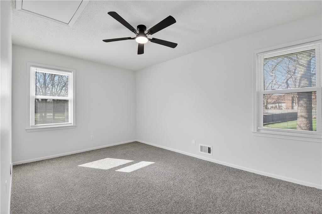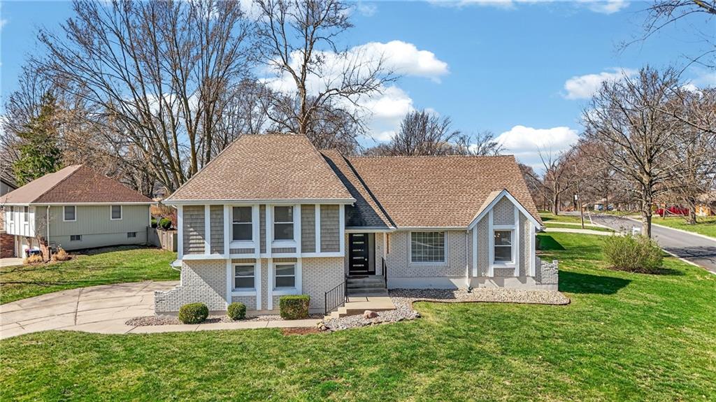 This home has been completely and beautifully remodeled with a design you are going to love, featuring bold accents and modern touches throughout. The kitchen highlights new cabinets, quartz countertops, a subway tile backsplash, and stainless-steel appliances. It is an entertainer's delight with an open concept, large central island, a breakfast eat-in space and formal dining room complete with a bold accent wall and overflow wine storage that shows as artwork. Black and gold fixtures add a stylish modern appeal, and the beautiful light fixtures throughout the home complete the updated look. You will love the foyer entrance with beautiful accent wall, built in storage and bench, and modern chandelier. The main level has a great formal room with gas starter fireplace, a vaulted ceiling, and walk out to a covered patio. Upstairs are three bedrooms and two full baths, including a HUGE primary bedroom. The ground level features a fourth bedroom on the same level as the garage, along with laundry and a half bath. The basement includes a third full bathroom and large finished space with unlimited possibilities. There is three hundred plus sq feet of unfinished storage space as well. A NEW HVAC in May 2023 will have you living in comfort for years to come. Exterior features including vinyl siding, thermal windows, a cute shed, and a large corner lot make this home a must see. Book your tour today!