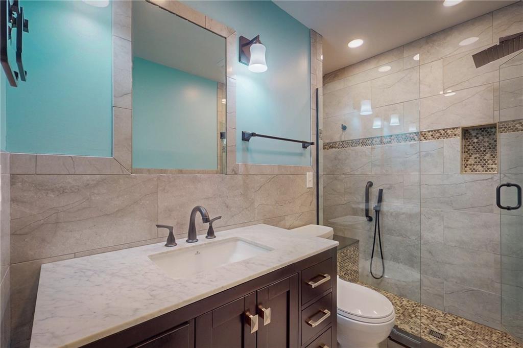 This well-maintained side-to-side split is ready for you to call home! Offering 4 bedrooms, 2½ bathrooms, and a 20x20 2-car garage, this home has been thoughtfully updated and beautifully cared for. Major updates include a new roof (2023), HVAC (2021), siding (2022), newer electrical panel, and updated decks—giving you peace of mind for years to come. Step inside to find gorgeous hardwood floors throughout the entire home. The main level features a formal living room that flows into the dining room and a 1/2 bath, creating a great space for gatherings and entertaining. The layout continues into the kitchen with a breakfast area, offering plenty of room for everyday living. Just up one level you’ll find a spacious bedroom, updated full bath, and an extra-large laundry room. Continue up to the next level where there are three additional bedrooms, including the primary suite with an updated en-suite bathroom and a 12x12 private deck overlooking the backyard. All three bathrooms have been tastefully updated. From the kitchen, step down to the cozy great room with a fireplace, perfect for relaxing evenings. The lower level also includes a 27x21 unfinished basement area, providing excellent storage or the opportunity to finish and add additional living space. Additional features include a Generac whole-house generator for added security and comfort. Enjoy the outdoors in the fenced backyard with a 18x10 storage shed. Step out from the back door to the 13x10 screened-in porch, a 13x13 concrete patio, then onto the stone patio with a hot tub—an ideal space to unwind or entertain guests. This home offers space, updates, and multiple indoor and outdoor living areas—all ready for its next owner!