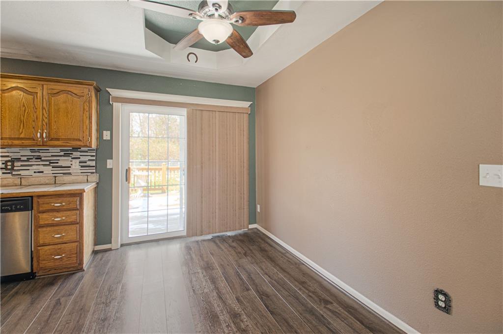 Cute split entry floor plan that offers a finished family room in the lower level or use it as a second owners suite! A fireplace in the great room, to use in those colder days, carpet throughout in the family room and bedrooms. Step out onto the deck and enjoy your new spacious fenced yard. The lower level carpet will be replaced along with the garage entry by the stairs. Lower level laundry and family room, office or use as a second owners suite.