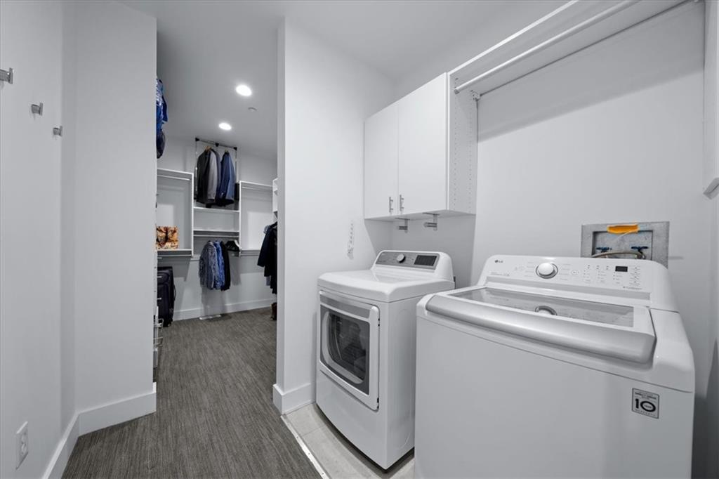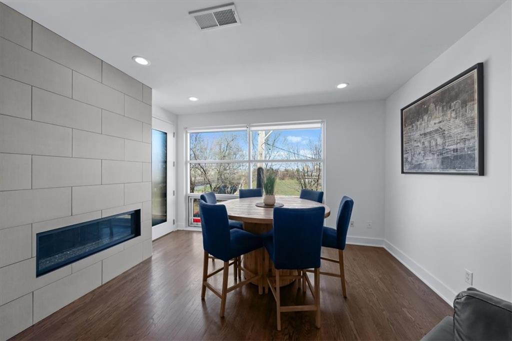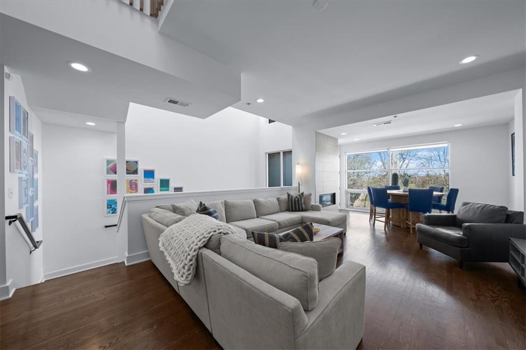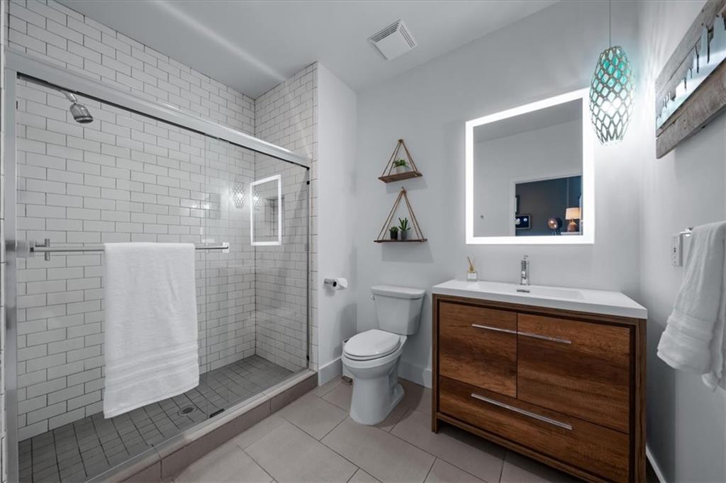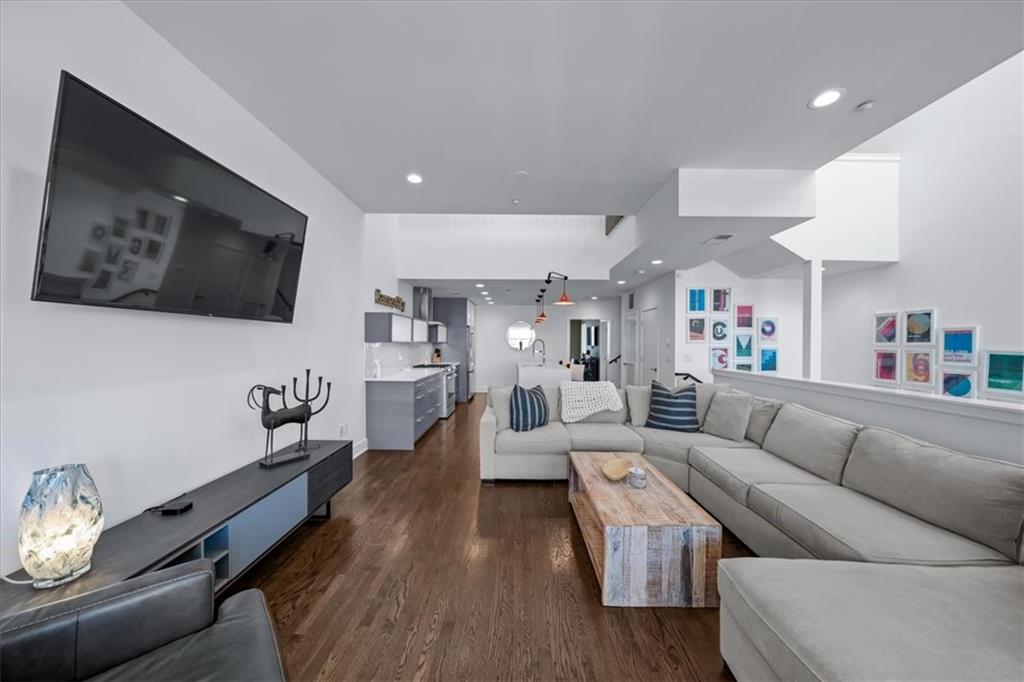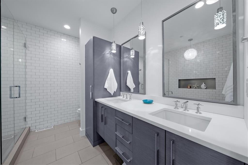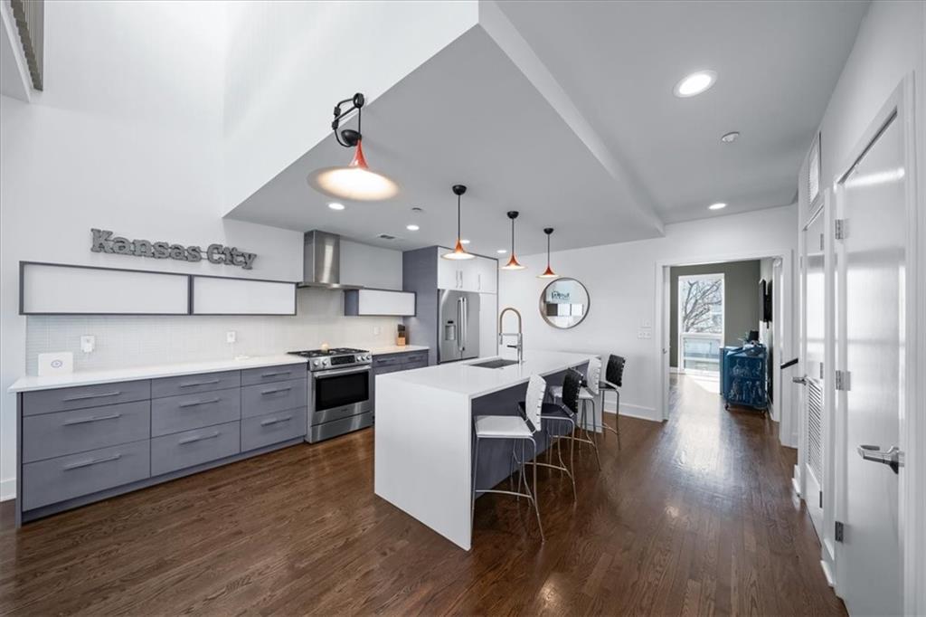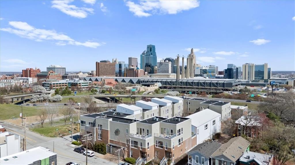 Experience urban luxury at 715 W 16th St, a sleek 2,398 sq. ft. condo meticulously transformed by Studio Build in the heart of the Upper West Side. Flooded with natural light from floor-to-ceiling windows and skylights, the home features gorgeous hardwoods at the stairs, main living area, and kitchen. Both the kitchen and bathrooms were fully gutted and reimagined with custom modern cabinetry and high-end fixtures, including a dramatic quartz waterfall island, walk-in pantry, and gas stove. The refined layout offers two spacious bedrooms, including a primary suite where the bath boasts dual sinks, a corner sport shower, and a floating tub, leading to a massive custom closet equipped with pull-down rods, multiple custom shelving units and laundry hookups with the full washer and dryer to remain. Complete with a secured gated motor court, two private garages, and exceptional outdoor spaces—including a covered terrace and an expansive open veranda with unparalleled city views—this residence is perfectly positioned just steps from Westside cafes and shops, the Crossroads Arts District, and the Power & Light District.