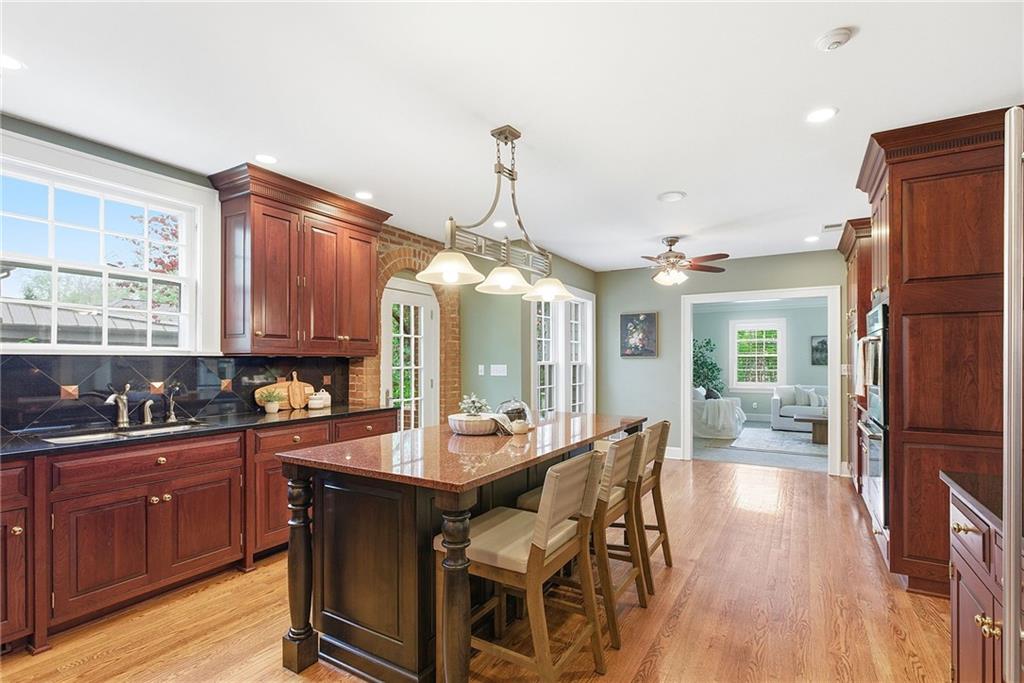 We all love a center hall floor plan! Over 4,000 SF with flexible living space for our everyday lives and entertaining is what you'll find in this 3-story home. The formal living and dining rooms give a traditional feel, while the extra rooms, library/sunroom/playroom make this house so versatile. Wainscoting is one of those details that quietly makes everything look more refined, and this home carries it in the entry hall, dining room, staircase and 2nd floor hallway. The eat-in kitchen is a true standout, showcasing a large island with breakfast bar, premium Thermador appliances, double oven, and an 8-burner gas cooktop with griddle. Thoughtful details include abundant cabinetry with roll-out shelving, a pantry, glass-front cabinets, and under-cabinet lighting. A convenient side entrance into the kitchen with charming brick steps makes grocery drop-off effortless. A big family room opening to the patio with French doors is a strong highlight—and features a built-in grill and firepit, which extends the living space outdoors. Great setup for hosting all things fun! Half bath with linen storage and a walk-in coat closet is conveniently located in the hallway off the family room. Large primary suite with walk-in closet, 2 single closets and a bonus room plus an updated bathroom with double vanity, whirlpool tub, separate shower and plantation shutters. 2 additional bedrooms on 2nd floor with an updated hall bath! 3rd floor features 4th bedroom or flex space with a full bathroom. The walk-in storage room with a double cedar closet is a great feature. Three zoned HVAC systems. Lots to love with the hardwoods, plantation shutters, updated bathrooms. 2-car attached garage. Newer windows in family room, sunroom, eat-in kitchen space, guest room, full bath and primary bedroom. High ceilings in basement and newer 2 car garage. Walking down Meyer Blvd. to the Brookside shops and eateries, being close to the trolley trail, Crestwood and Plaza is unbeatable!