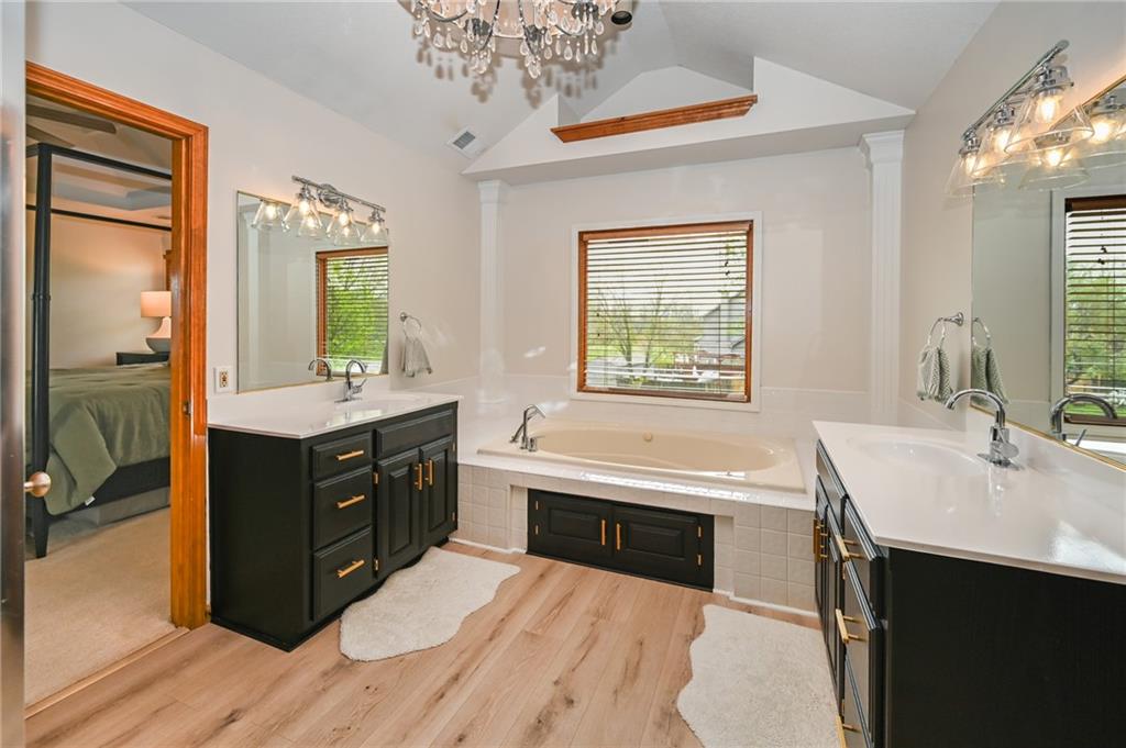 Welcome to Oak Country Estates — one of De Soto's most established communities, tucked just off Kill Creek Road with large lots, abundant green space, and a country feel that is genuinely rare this close to K-10. No HOA. No restrictions. This updated 2-story home sits on 1.15 acres and backs directly to the Oak Country Golf Course, offering open views and privacy you will not find in a typical subdivision. Wildlife is part of everyday life here — deer in the yard is a common sight. Golf membership and guest play are available through the course separately. Inside, 3,740 square feet of finished living space gives everyone room to spread out. The layout features multiple living areas, a finished lower-level rec room ideal for entertaining or family use, and bedroom-level laundry that keeps daily life running smoothly. The spacious primary suite is a genuine retreat. FIVE BEDROOMS Four conforming and one non-conforming bedrooms, three baths, and a 2-car attached garage round out the package. Built in 1995 with thoughtful updates throughout. * Hot Tub Stays * Public water, septic. Families will appreciate the De Soto Unified School District — ranked 11th out of 266 Kansas districts. De Soto High School holds a 10/10 GreatSchools rating, ranks 9th in the state, and carries a 97% graduation rate. Feeding schools include Starside Elementary and Lexington Trails Middle School. K-10 is minutes away, connecting you to Kansas City and Lawrence without sacrificing the space, quiet, and setting that make Oak Country Estates worth coming home to