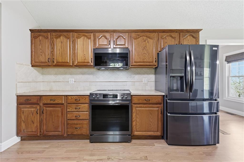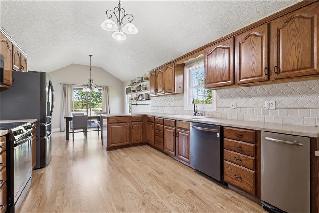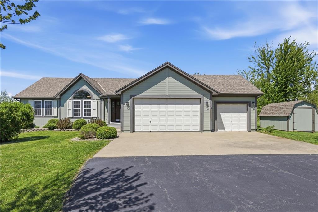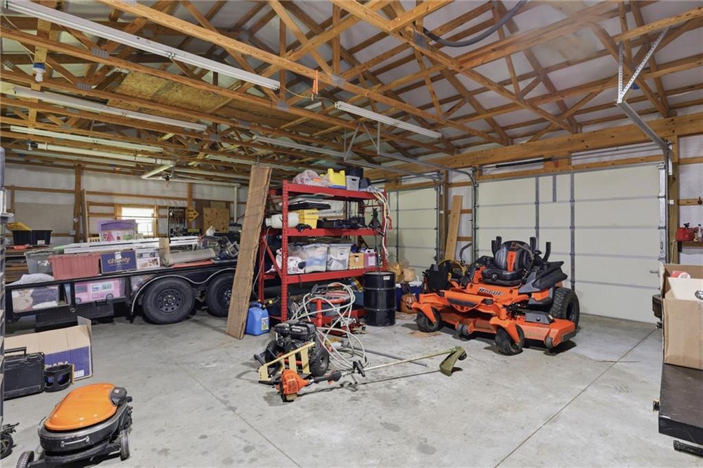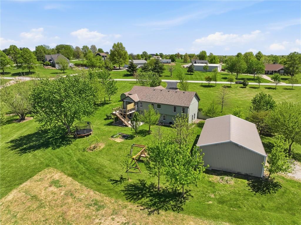 Welcome to your private retreat w WORKSHOP & shed on 3.68 acres—where modern efficiency meets peaceful, nature-filled living. This immaculately maintained ranch home offers 5 bedrooms and 3 full baths, with 3 bedrooms on the main level and 2 additional bedrooms downstairs—perfect for flexible living or multi-generational needs. The home features two spacious living areas and a partially open floor plan with a cozy fireplace, creating an inviting space for both everyday living and entertaining. The home is ALL electric and equipped with a highly efficient Bosch geothermal HVAC system, delivering impressively low utility costs—often less than a townhome. Major updates include a new roof (2019), gutters and flashing, fresh exterior paint (2020), beautifully refinished hardwood floors, new appliances (November), main lvl popcorn ceiling removal (2023), and fresh interior paint throughout. The property also features an impressive 30x48 outbuilding built by QSI, complete with 200-amp service, concrete floors, 8’ doors, and 10’ eaves—ideal for a workshop, storage, or hobby space. Step outside and experience what truly sets this property apart. Thoughtfully & organically maintained, the land has been cared for without harsh chemicals—supporting healthy soil, pollinators, & wildlife. The grounds are rich with established plantings and mature trees, including 8 apple trees, approximately 20 producing blueberry bushes, pear, plum, pecan, walnut, oak, multiple maple varieties, redbud, pine, and more. You’ll also find established asparagus, garlic, bunch onions, mint, lemon mint, & strawberry patches. Nature lovers will appreciate the abundant wildlife—frequent sightings of birds, rabbits, foxes, squirrels, tree frogs, & more—along with a partial creek area on the north side complete with a charming treehouse. This one-of-a-kind property offers space, sustainability, and serenity—paired with modern updates, efficiency, and a layout designed for comfortable living.