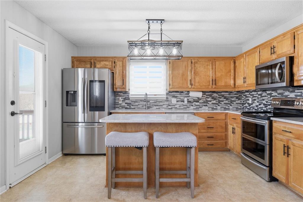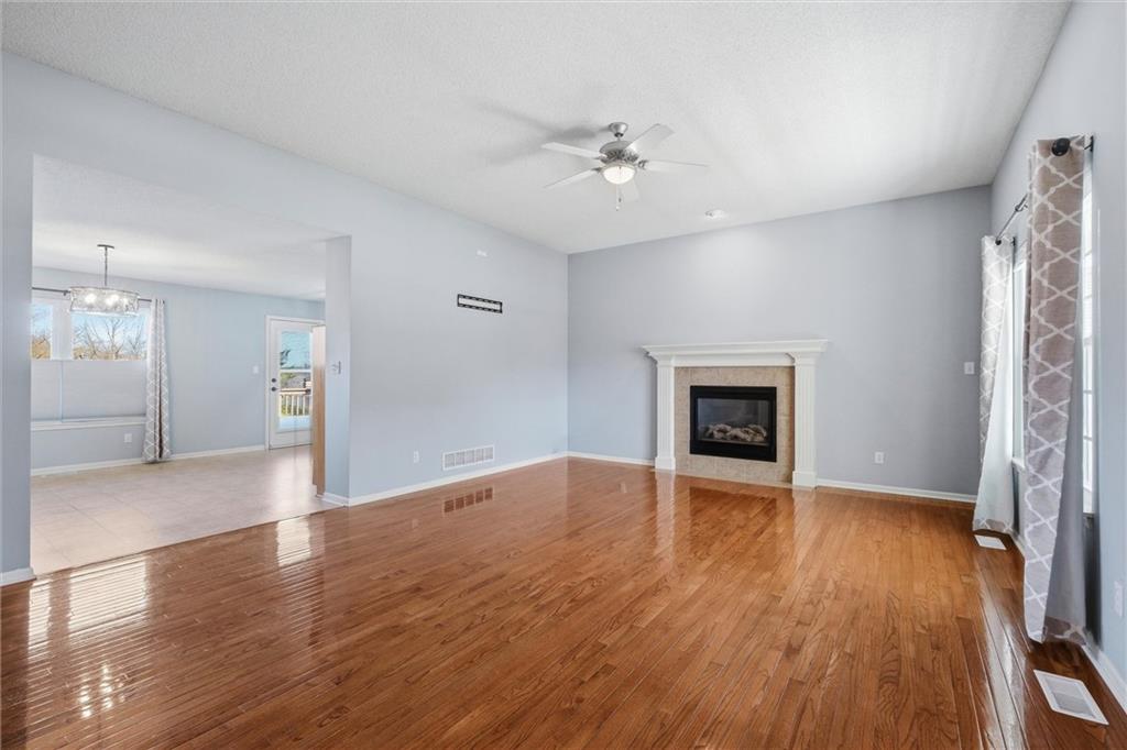 Welcome to this beautiful home in the desirable Highland Pointe subdivision! This very well-maintained property offers spacious living with an inviting floor plan perfect for both everyday living and entertaining. The main level features a bright living area that flows seamlessly into the kitchen and dining space, creating an open and comfortable atmosphere. The kitchen has pantry, granite, island, and refrigerator stays! Living room with fireplace! The home offers generously sized bedrooms, including a relaxing primary suite with a private bath with dual sinks, shower and ample closet space. Main level laundry room too! The finished walk out basement has family room, storage, and full bathroom. Step outside to enjoy the backyard with wrought iron fence, repainted deck, and sprinkler system, ideal for outdoor gatherings, gardening, or simply relaxing. Conveniently located with easy access to Lansing and Leavenworth amenities, shopping, dining, VA hospital, Base, and commuter routes, this home offers the perfect combination of comfort and location. Extra features include garage coating, new garage door, new disposal, new HVAC, new water heater, new paint, newer washer and dryer stay!