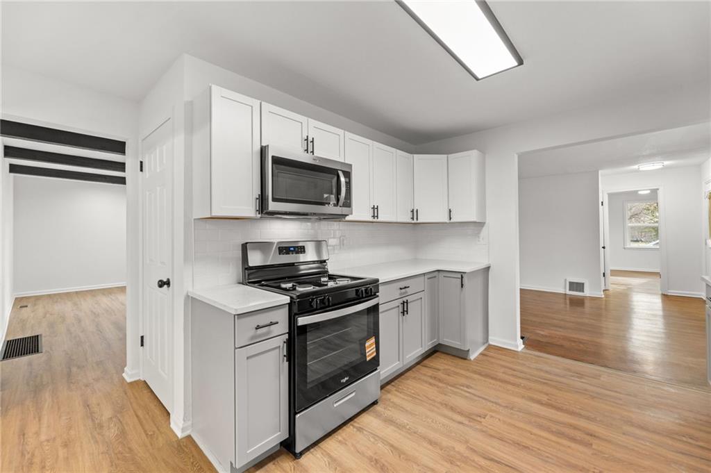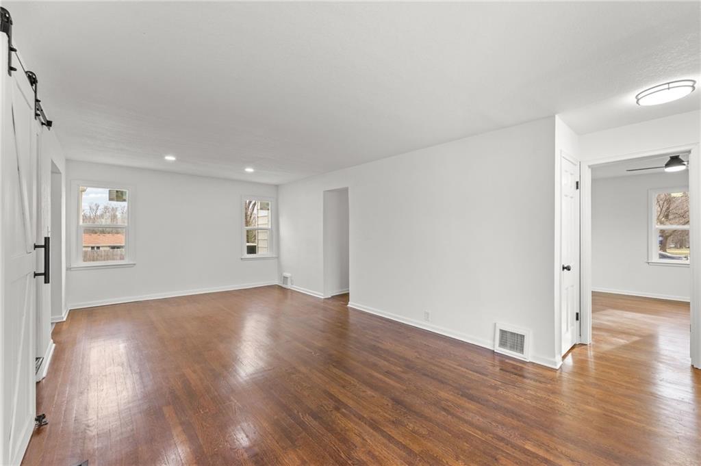 Completely renovated and move-in ready, this beautifully updated home blends classic charm with modern finishes on an expansive lot. Nearly every surface has been refreshed, including new flooring, fresh interior and exterior paint, brand-new windows, updated kitchen cabinetry, and new appliances, creating a bright and welcoming space throughout. The main level features a spacious living area with striking exposed beams and an open flow that connects seamlessly to the dining area and updated kitchen—perfect for everyday living or entertaining. Large windows fill the home with natural light, while multiple living areas offer flexibility for a formal living room, family room, or home office. Upstairs you'll find a private oversized bedroom suite complete with its own full bathroom, creating an ideal retreat for a primary bedroom, guest space, or quiet work-from-home setup. Step outside to enjoy nearly half an acre of yard space, offering room to garden, entertain, or simply relax. The large detached garage provides excellent storage, workshop potential, or additional parking. Conveniently located near shopping, dining, parks, and major highways, this home offers both space and accessibility. Schedule your showing today. Homes with this much space, land, and renovation rarely last long.