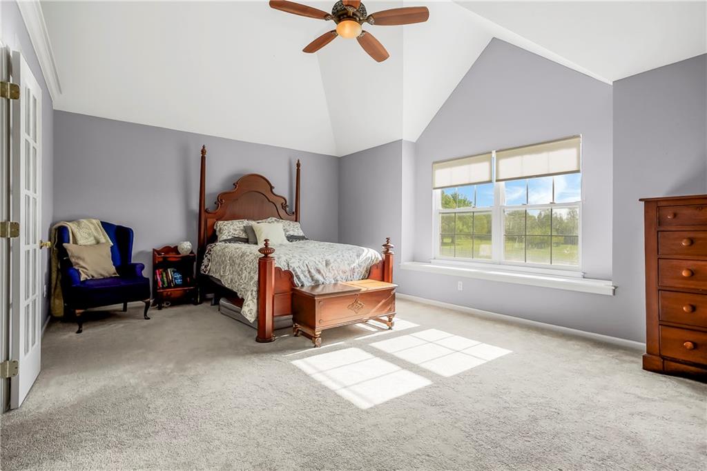 Discover the perfect blend of space, comfort, and country charm with this one-owner home set on 3 acres in sought-after Louisburg Country Estates. Step into the inviting living room featuring soaring ceilings and a cozy fireplace. The spacious kitchen offers quartz countertops, stainless steel appliances, and a generous eat-in area...all opening to a deck that overlooks the meticulously maintained yard. The main level includes two additional bedrooms and a full bath, ideal for family or guests. Upstairs, the oversized primary suite features a custom bathroom complete with a separate shower and soaking tub. The finished lower level provides a large living area, an additional bedroom and bath, and walkout access to a private patio, perfect for entertaining or relaxing. For hobbyists or extra vehicle storage, you'll also enjoy a second 3-car detached garage/workshop. Conveniently located near both 68 Highway and 69 Highway, this property offers peaceful country living with easy access to Louisburg or Overland Park amenities.