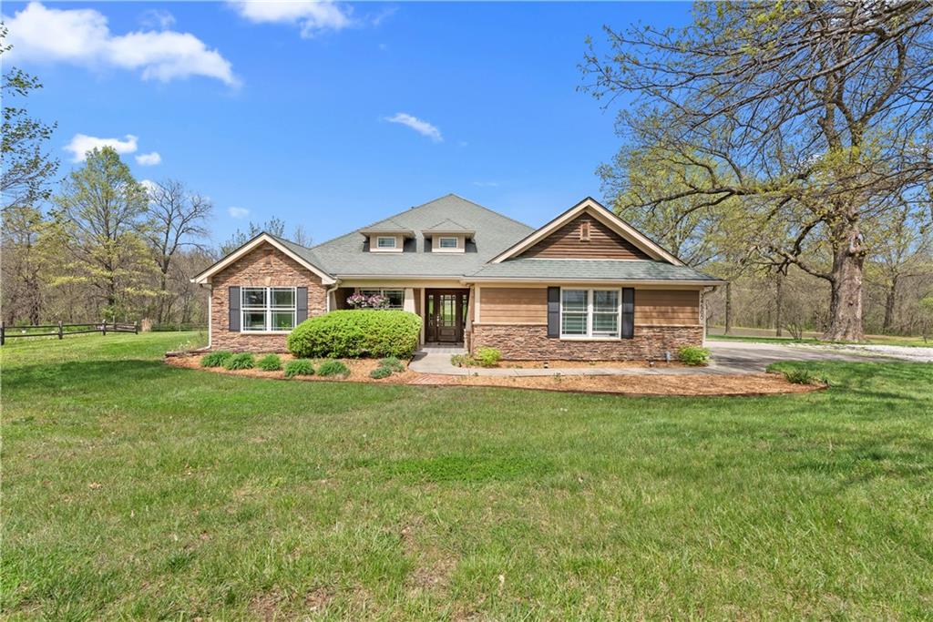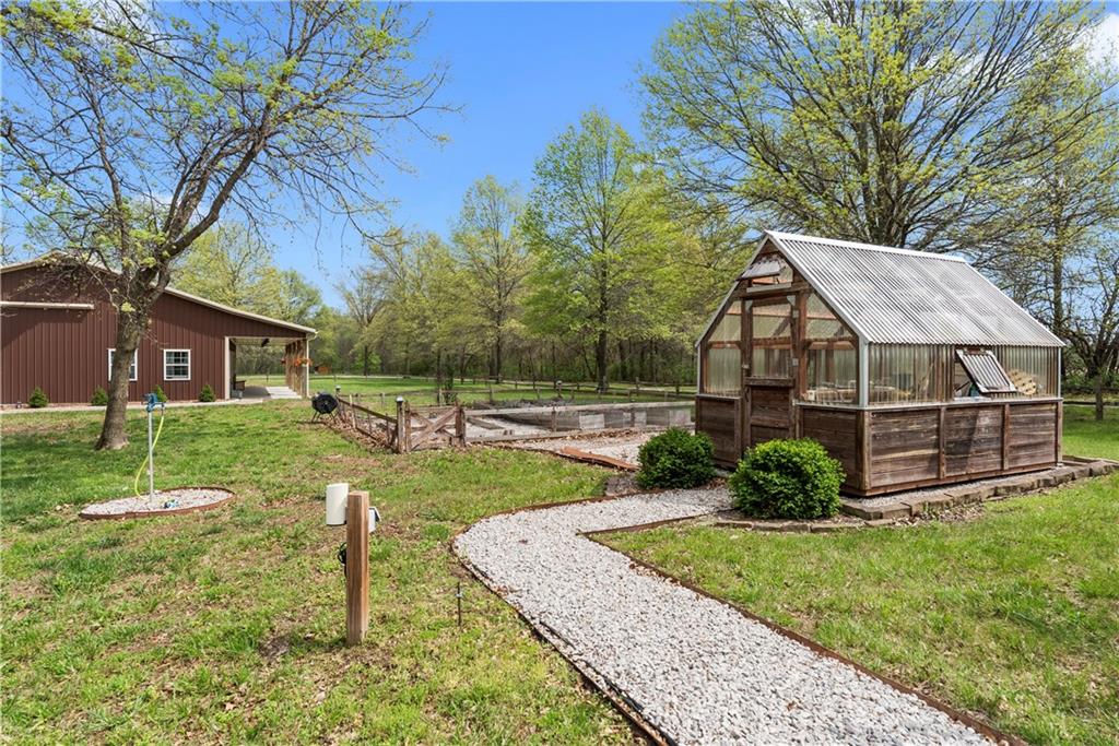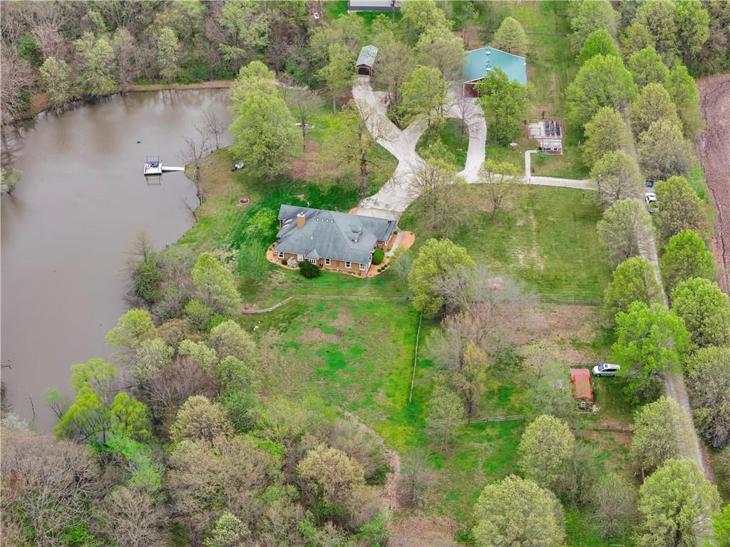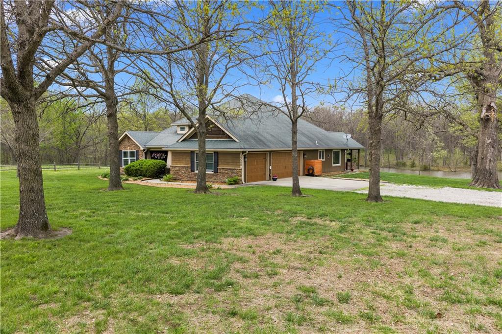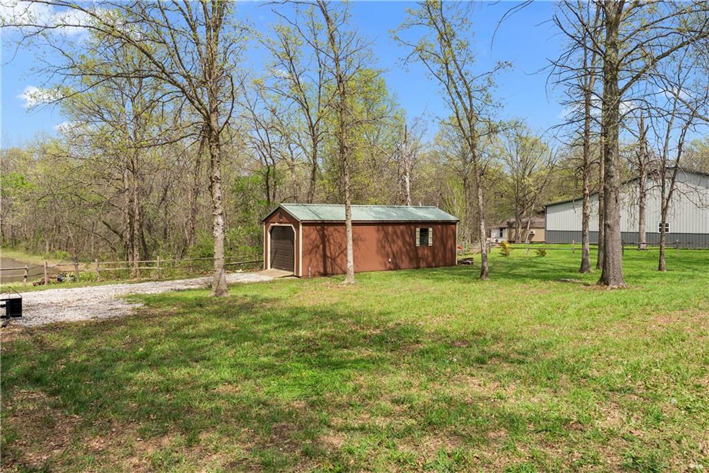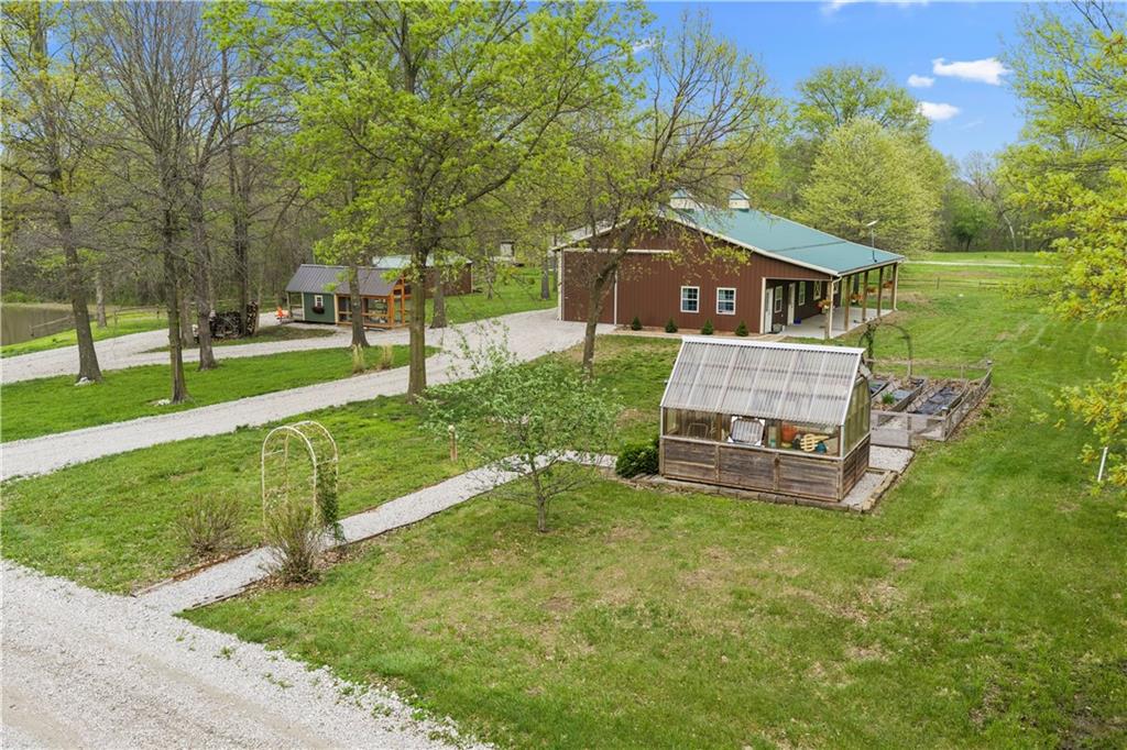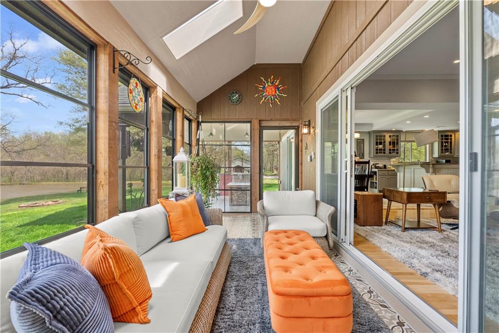 Incredible sanctuary of a property, on 19 secluded beautiful acres. With an incredible lake and lake views from most of the home. This is a rare gem on a quiet private road, split rail fencing, gated entrance, run in shed for horses with tack room and hay storage. Chicken coop with covered run (with chickens, automatic door, feeders, heaters, waterers; that could all stay) greenhouse, 12x32 shed/1 car detached garage, 3 car attached garage, 36x46 outbuilding/shop with 10 foot over hang, finished area for an office or additional relaxation space, plus a second finished area for a tack room etc. 24x24 fenced garden area with raised beds, upgraded landscaping, rebuilt pond with gazebo new dock, and bubbler, upgraded exterior lighting. Interior nearly completely remodeled and meticulously maintained. Beautiful front porch entry with tile, opens to a gorgeous office with beautiful freshly painted wooden built ins, living room with fireplace pre wired for sound systems inside and out and incredible lake and treed property views. Beautiful 3 seasons room with new tiled, heated floor that walks out to a beautiful outdoor kitchen. Gorgeous updated hardwood flooring. Upgraded kitchen with stainless steel appliances, laundry and pantry with upgraded storage. 3 generously sized bedrooms and 2 bathrooms, Primary bedroom boats plenty of natural light and more lake views, walk in primary closet with improved storage. Geothermal heat/AC plus so much more.