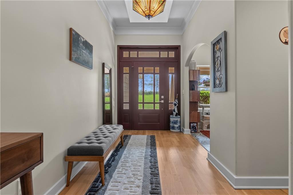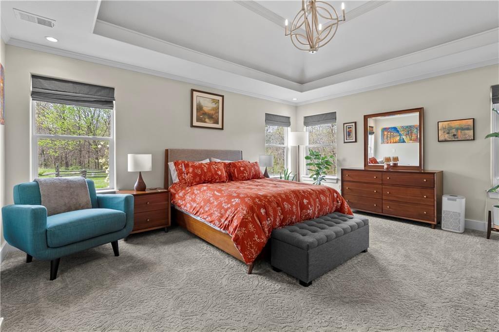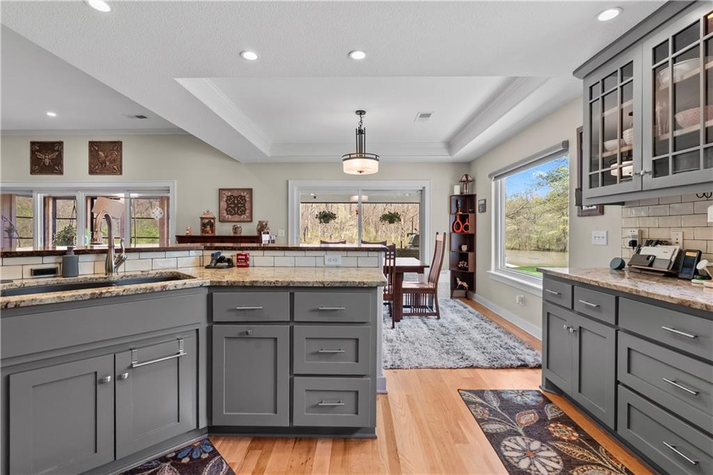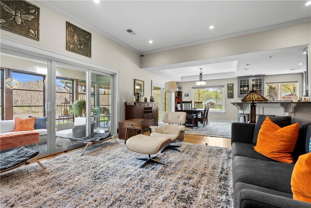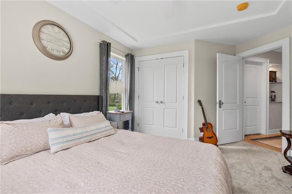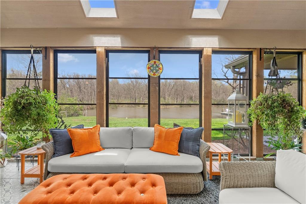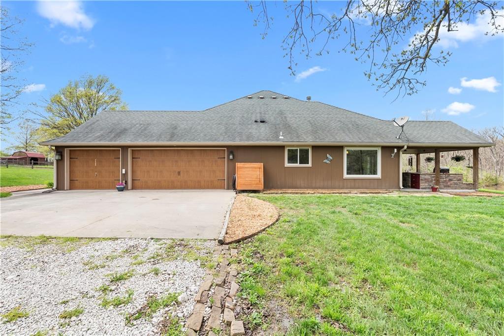 Incredible sanctuary of a property, on 19 secluded beautiful acres. With an incredible lake and lake views from most of the home. This is a rare gem on a quiet private road, split rail fencing, gated entrance, run in shed for horses with tack room and hay storage. Chicken coop with covered run (with chickens, automatic door, feeders, heaters, waterers; that could all stay) greenhouse, 12x32 shed/1 car detached garage, 3 car attached garage, 36x46 outbuilding/shop with 10 foot over hang, finished area for an office or additional relaxation space, plus a second finished area for a tack room etc. 24x24 fenced garden area with raised beds, upgraded landscaping, rebuilt pond with gazebo new dock, and bubbler, upgraded exterior lighting. Interior nearly completely remodeled and meticulously maintained. Beautiful front porch entry with tile, opens to a gorgeous office with beautiful freshly painted wooden built ins, living room with fireplace pre wired for sound systems inside and out and incredible lake and treed property views. Beautiful 3 seasons room with new tiled, heated floor that walks out to a beautiful outdoor kitchen. Gorgeous updated hardwood flooring. Upgraded kitchen with stainless steel appliances, laundry and pantry with upgraded storage. 3 generously sized bedrooms and 2 bathrooms, Primary bedroom boats plenty of natural light and more lake views, walk in primary closet with improved storage. Geothermal heat/AC plus so much more.