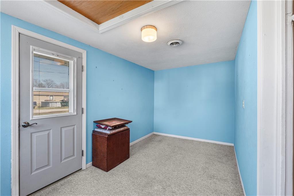 This 2 bedroom, 2 bathroom bungalow offers approximately 1,300 square feet of living space with a practical layout and flexible room options. Wood appearance flooring runs through much of the home while vinyl windows allow natural light to fill the main living areas. The formal dining room sits at the heart of the home and serves as a welcoming space for gatherings and everyday meals. The living room flows easily into the dining area, creating a natural connection between the main living spaces. The kitchen provides ample cabinet storage, generous counter space, and a convenient breakfast bar. A main level laundry area located just off the kitchen adds everyday convenience. Both bedrooms are generously sized, including a primary bedroom with a private bathroom featuring a walk-in shower. The second bathroom is accessible from the second bedroom and is also conveniently located for guest use. An additional room offers flexible space that could serve as a home office, hobby room, or extra storage. The layout also provides the option to create a third bedroom if desired, with the current living room easily transitioning into bedroom space while the formal dining room could serve as the main living area and the spacious kitchen accommodate an eat-in dining setup. Outside, the property features a covered front porch, an attached garage with rear entry access, and a detached shed for additional storage. Rear alley access provides convenient garage entry while on-street parking is available at the front of the home. Located in Rich Hill, Missouri, this bungalow offers flexible living space and approximately 1,300 square feet of living area.