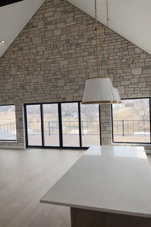 Brand-new luxury lakefront retreat located on Lot 163 with approximately 96 feet of shoreline, perfectly positioned in one of Lake Viking’s most highly sought-after coves. This stunning home offers 3 bedrooms, a spacious bunk room, and 3.5 baths, thoughtfully designed to capture the beauty of lake living while showcasing high-end finishes, exceptional craftsmanship, and effortless functionality. The expansive great room features a dramatic 25-foot floor-to-ceiling stone accent wall, creating a striking architectural centerpiece. The designer kitchen is both elegant and functional, featuring quartz countertops, stainless steel appliances, oversized island perfect for gathering, and a walk-in pantry. The main-level primary suite offers a private lakeside retreat with a large closet and a spa-inspired bathroom that delivers with a tiled wet room. Upstairs, you’ll find a large bedroom, a full bathroom, and an impressive built-in 6-person bunk room. The lower level expands the home’s entertaining possibilities with a spacious family room that opens to the covered deck, a bar and wine rack, an additional bedroom and full bath, and a large unfinished storage/flex space. The property also features a one-car garage, covered dock with lift, and a lakeside fire pit area where nights are spent around the fire sharing stories and creating lifelong memories. With its premium cove location, 96 feet of shoreline, luxury finishes, and thoughtfully designed living spaces, this home offers the perfect setting to fully embrace the Lake Viking lifestyle. This brand-new home includes a 12-month builder warranty from the contractor, providing peace of mind as you begin your next chapter at the lake. This is more than a home—it’s a place to wake up to water views, gather with friends on the deck, and experience lake life the way it was meant to be lived.