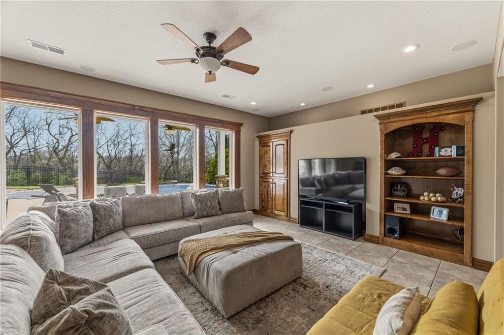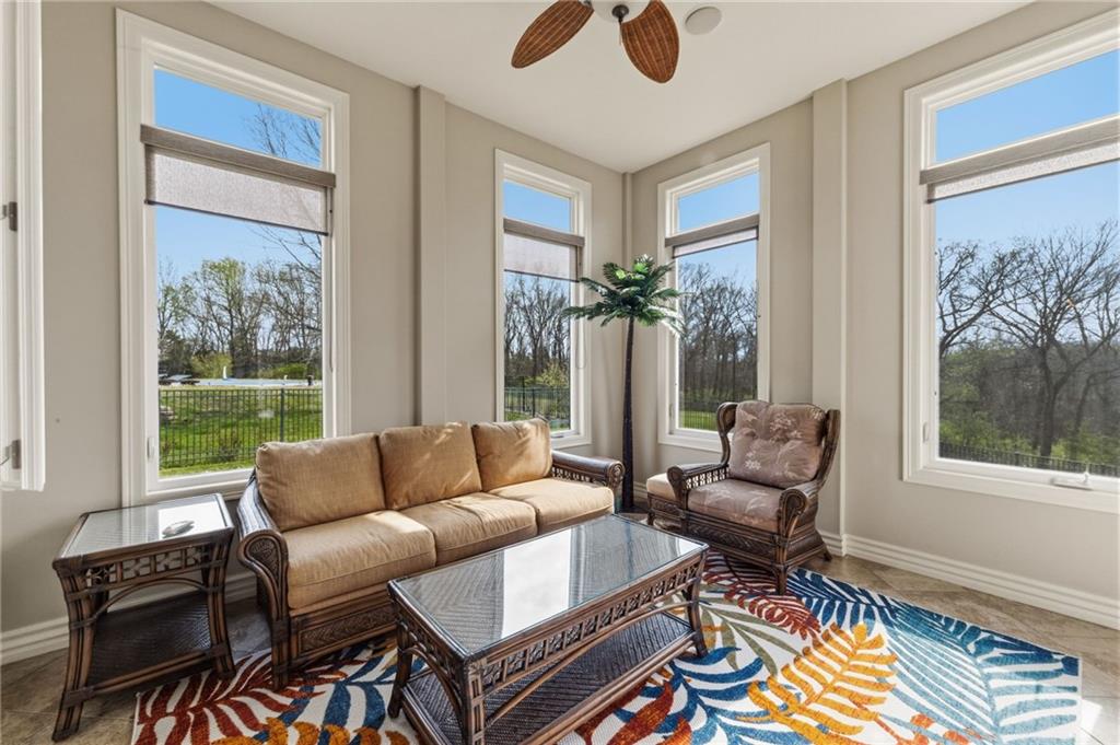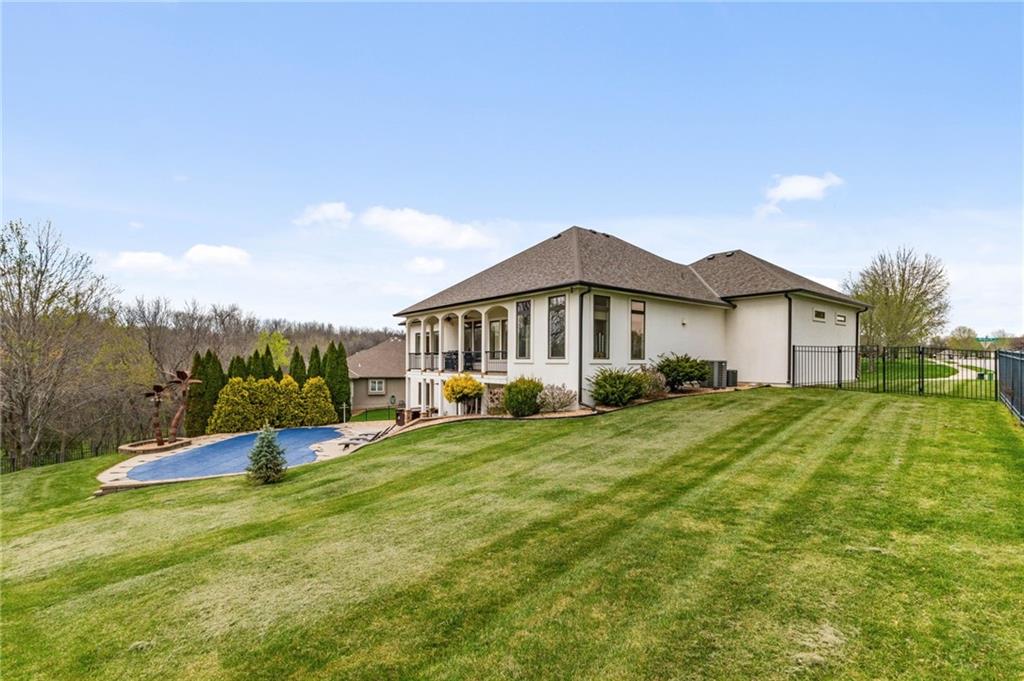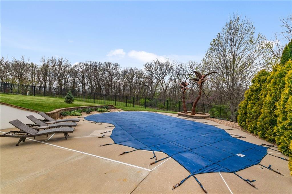 From the moment you approach, this stunning reverse 1.5-story masterpiece commands attention. Grand steel double doors open to over 5,000 square feet of meticulously designed living space, where every detail has been crafted for those who expect nothing but the best.Entertain in style on the main level, where an open-concept layout flows effortlessly from a formal dining room and private office to a breathtaking great room anchored by a gas fireplace. Walls of windows frame your backyard oasis, blurring the line between indoor elegance and outdoor paradise. The chef's kitchen is nothing short of spectacular — featuring stainless steel appliances, a double built-in oven, a 5-burner gas cooktop, expansive granite countertops, a oversized island, and a walk-in pantry. Whether you're hosting an intimate dinner or a grand celebration, this kitchen delivers. Your private retreat awaits in the luxurious main-level master suite, overlooking the sparkling saltwater pool and endless forest beyond. The spa-inspired en suite boasts double vanities, granite countertops, custom cabinetry, a soaking tub, oversized tile shower, and a private water closet. The massive walk-in closet — complete with a center jewelry island — is a statement all its own. The basement is an entertainer's crown jewel. Descend the showstopping central staircase to a world-class entertainment level featuring a full bar, a dedicated theater room with projector and surround sound, a wine room, and a bonus room ideal for a private gym. Step outside into your personal paradise. The backyard is an absolute showstopper — a resort-style saltwater pool, hot tub, and lush professional landscaping, all backed by a wall of pristine, private forest. No rear neighbors. Just nature, serenity, and the sounds of wildlife. Additional highlights include a four-seasons sunroom, Oversized three car garage and fenced in yard. This is not just a home — it's an experience. Schedule your private showing today.