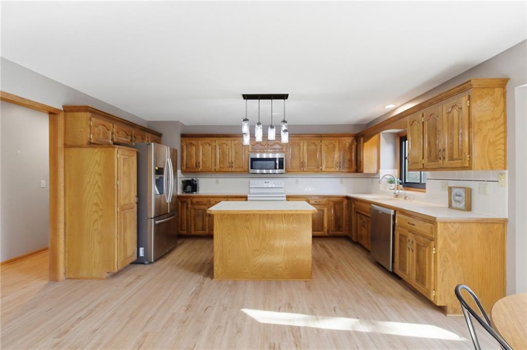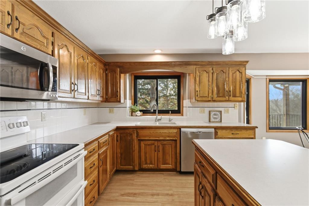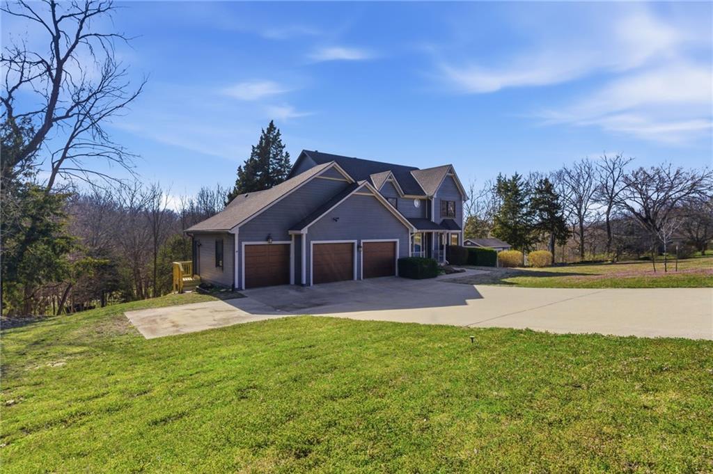 Welcome to this spacious and beautifully maintained 5-bedroom home in the desirable Country Oak Estates of De Soto with no HOA! Spacious 5 bedroom home on 1.3 acres. This home offers a main-level primary suite, along with a study/office, laundry room and living room. The large eat-in kitchen is perfect for gathering and is complemented by a separate formal dining room. New LVT flooring and carpet on the main level. Upstairs features three generously sized bedrooms and a full bathroom along with an expandable attic waiting for final touches. A prior owner started this for an additional primary bedroom. Perfect for a hobby room or additional living. The finished walkout basement expands your living space with a second living room, large rec room, kitchenette, fifth bedroom, full bathroom, workshop, plus ample storage—ideal for guests, hobbies, or multi-generational living. On the 1.3 acres you will enjoy the beautifully terraced, tree-lined backyard complete with a fire pit area. Newer Trex deck and screened-in porch provide the perfect setting for outdoor entertaining. Additional highlights include a 3-car garage with walkout door, Tuff Shed for extra storage, newer windows (2023), whole-home water filtration and softener system, reverse osmosis system, and a roof approximately 10 years old.