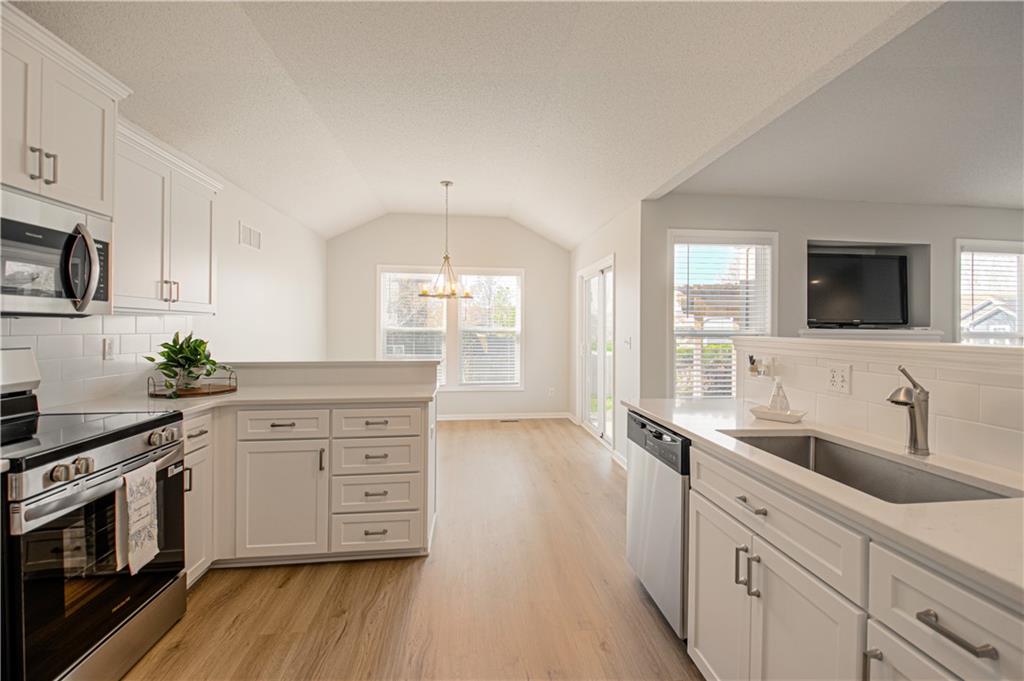Lovely corner lot home with all NEW Kitchen - self closing cabinets, rollout pantry drawers, countertops, backsplash and SS appliances. In addition there is all new carpet and LVT flooring and beautiful new light fixtures thru out. Home offers main level living with 3 bedrooms, 2 full baths, open living area, main level laundry and 2 car garage. The home has a concrete tile roof for low maintenance. The backyard has a privacy fence with updated landscaping, paver patio with pergola and irrigation system. The lower level is stubbed for a bath that would allow for easy finishing. All windows and fireplace have been inspected and upgraded where needed. Located in the beautiful neighborhood of Stonebrook Place that is conveniently located to elementary, middle and high schools. Move in ready with so much new!!