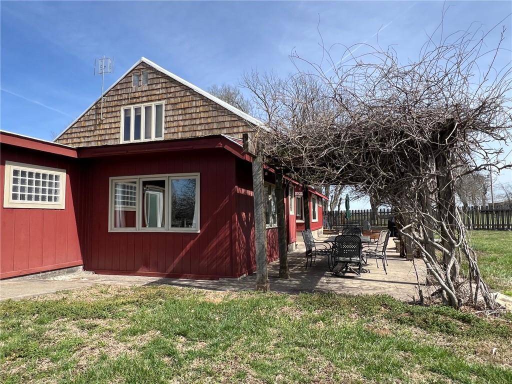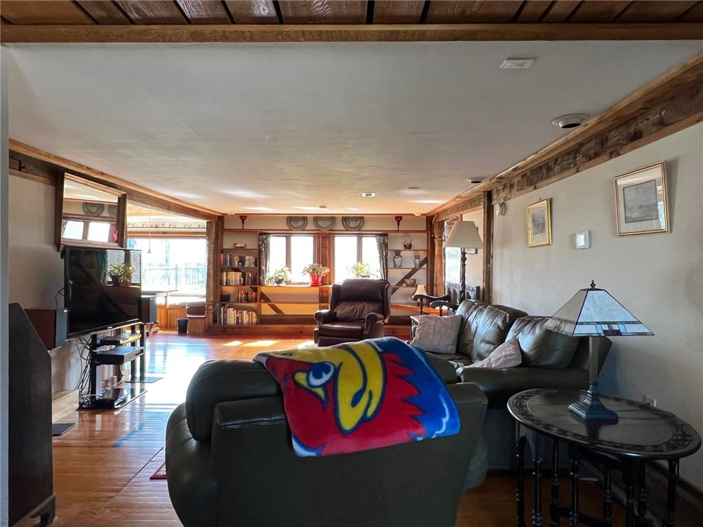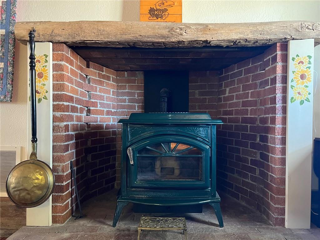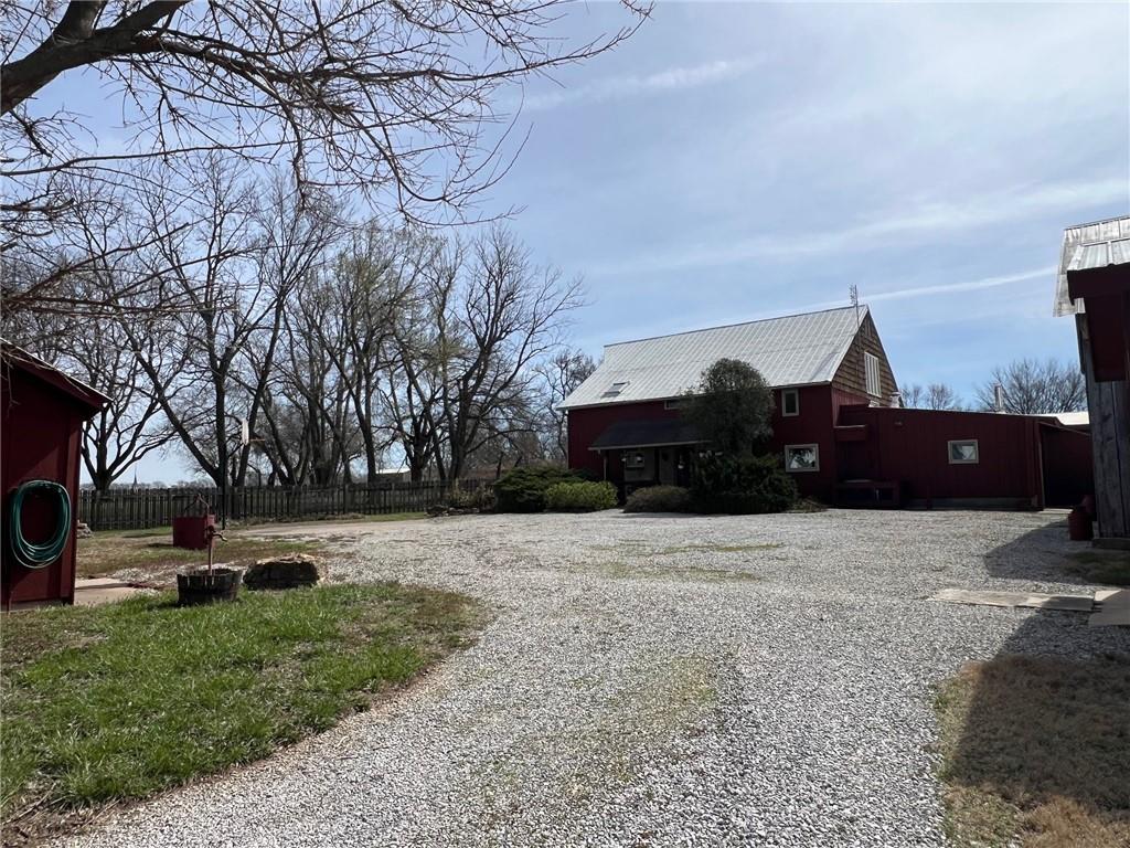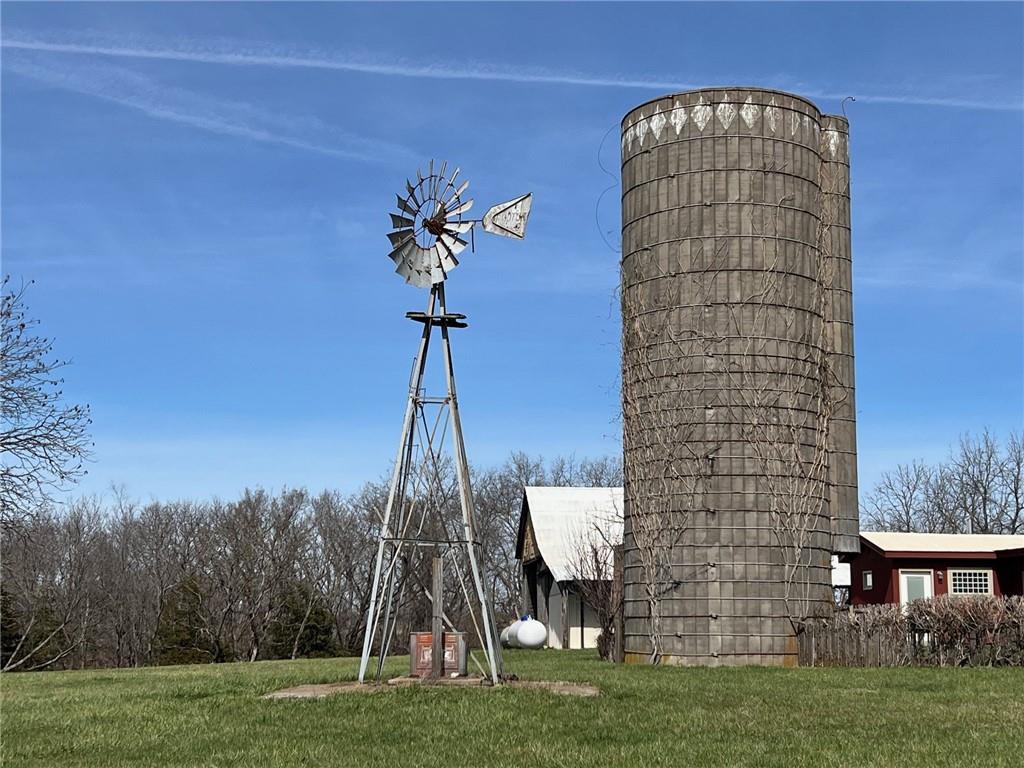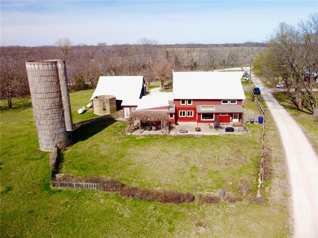 Located 8 miles south of Lawrence in the unincorporated town Pleasant Grove. The unique barn home conversion resides on one of the highest plateaus in Douglas County on 11 acres. This Gable Barn with a hay mow was part of an early European settlement in the 1870s. For approximately 100 years it served as a barn for a productive dairy farm. In the 1970s it was converted into a home. The Brown family had the opportunity to purchase the original basketball flooring from Allen Fieldhouse. They repurposed all the flooring except the K piece, installing it in throughout the home. Much of the 3,600 square feet contains this flooring. Just think, the GOAT “Wilt the Stilt” Chamberlain played on this floor! The current owners have enjoyed being the stewards for 20 years, improving the property with recent bathroom and kitchen renovations, new double pane windows and a high efficiency HVAC system. The property contains a mix of green space and old growth timber to the west. The compound still retains a grain silo, old windmill pump, barn, 1950s storage building (could be an art studio or office) and a newer one car garage. This is a magical place. It gushes with a rural Kansas vibe and rich KU basketball history. Who’s next?