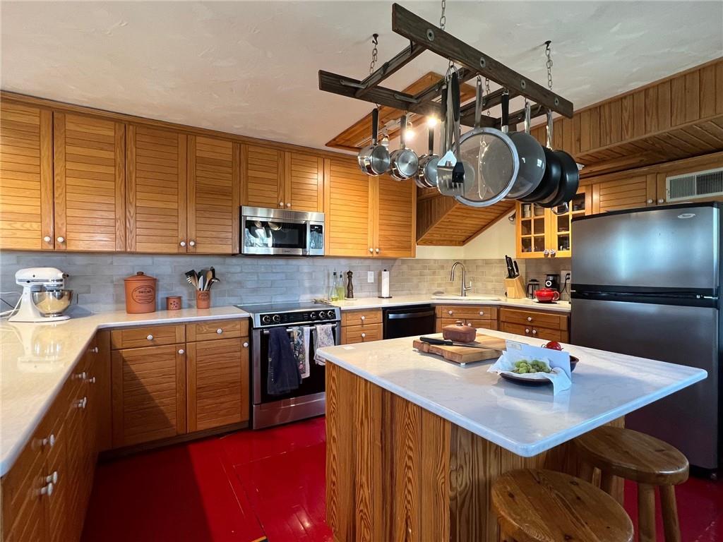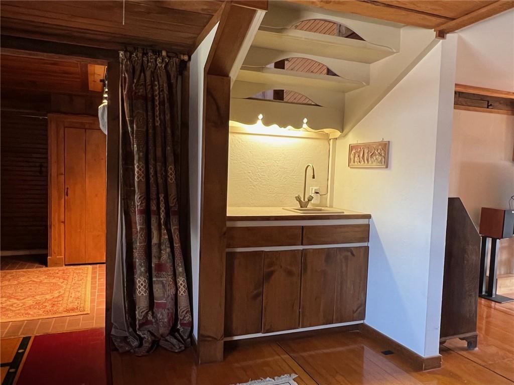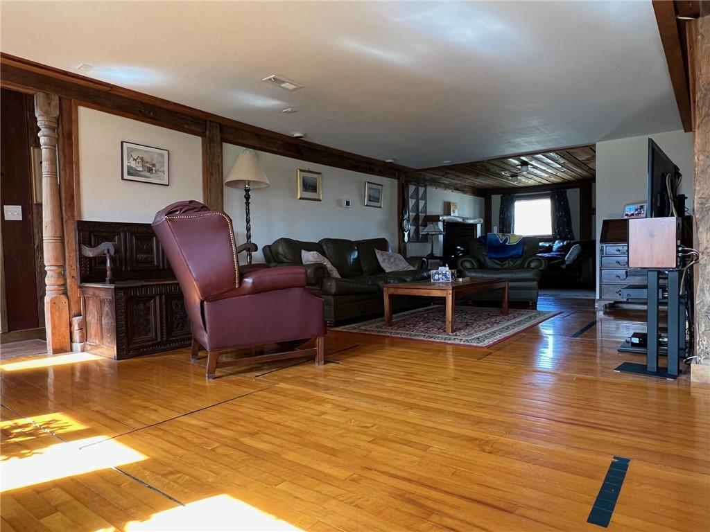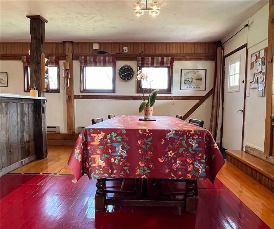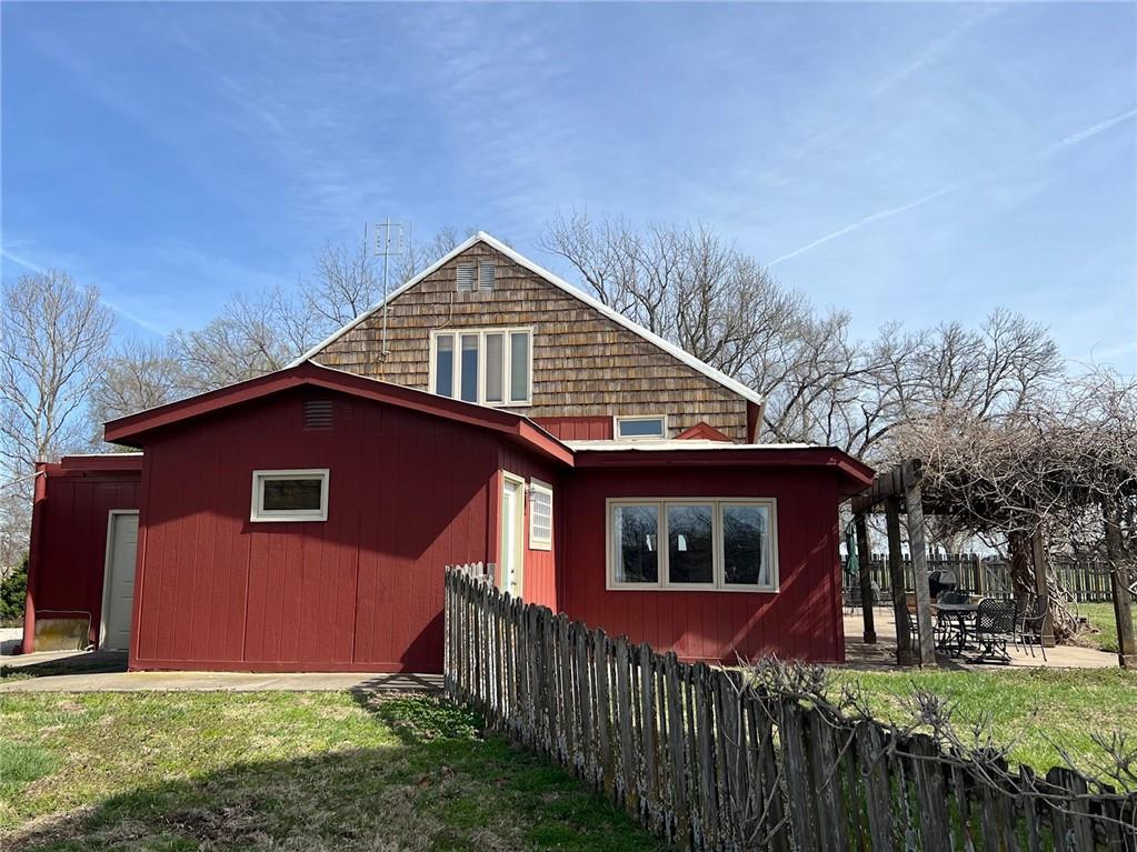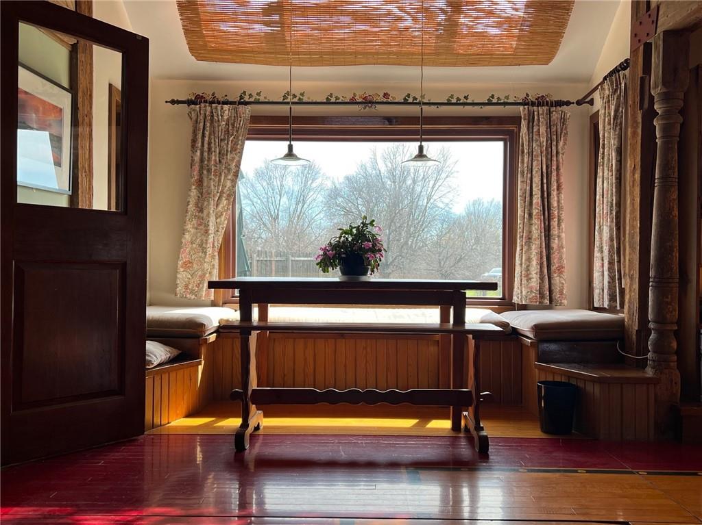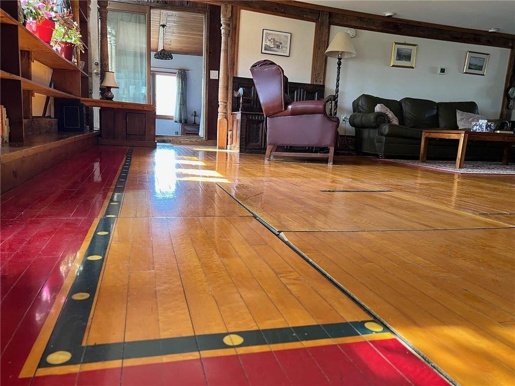 Located 8 miles south of Lawrence in the unincorporated town Pleasant Grove. The unique barn home conversion resides on one of the highest plateaus in Douglas County on 11 acres. This Gable Barn with a hay mow was part of an early European settlement in the 1870s. For approximately 100 years it served as a barn for a productive dairy farm. In the 1970s it was converted into a home. The Brown family had the opportunity to purchase the original basketball flooring from Allen Fieldhouse. They repurposed all the flooring except the K piece, installing it in throughout the home. Much of the 3,600 square feet contains this flooring. Just think, the GOAT “Wilt the Stilt” Chamberlain played on this floor! The current owners have enjoyed being the stewards for 20 years, improving the property with recent bathroom and kitchen renovations, new double pane windows and a high efficiency HVAC system. The property contains a mix of green space and old growth timber to the west. The compound still retains a grain silo, old windmill pump, barn, 1950s storage building (could be an art studio or office) and a newer one car garage. This is a magical place. It gushes with a rural Kansas vibe and rich KU basketball history. Who’s next?