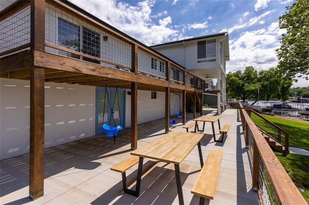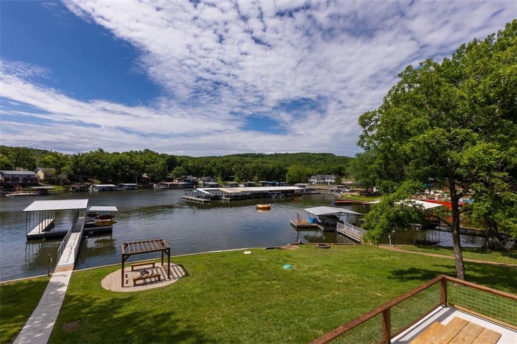 Lakefront retreat where family fun meets convenience and comfort! Nestled just a stone's throw away from Buddy's Harbor Boutique, our property boasts an ideal location for those who loves relaxation by the lake. As you step inside, you'll be greeted by a family-friendly layout designed to make your stay as enjoyable as possible. With deck access on both upper and lower levels, you can soak in the stunning lake views from sunrise to sunset. Enjoy your favorite shows al fresco with the outdoor TV, or gather around one of two picnic tables for a lakeside feast. Two high-top areas are also available perfect for sipping your morning coffee or evening cocktails. For those bringing along a boat, our dock includes a convenient 40' boat slip, ensuring easy access to the water. And for even more aquatic adventures, take advantage of our provided amenities, including kayaks, a swim ladder, and life jackets. Whether you're here to unwind by the water or embark on thrilling lake activities, our lakefront retreat offers the perfect blend of relaxation and excitement for your next getaway. Great space and accommodations for sleep, dining, gathering and enjoyment. - Upper & Lower Deck w/ Lake Views - Great Cove - Dining Indoors & Outdoors - Lake Amenities: Kayak, Swim Ladder, Life Jackets - Dock Seating - Dock with 12 x 40 Boat Slip w/ 2 Place PWC Slip