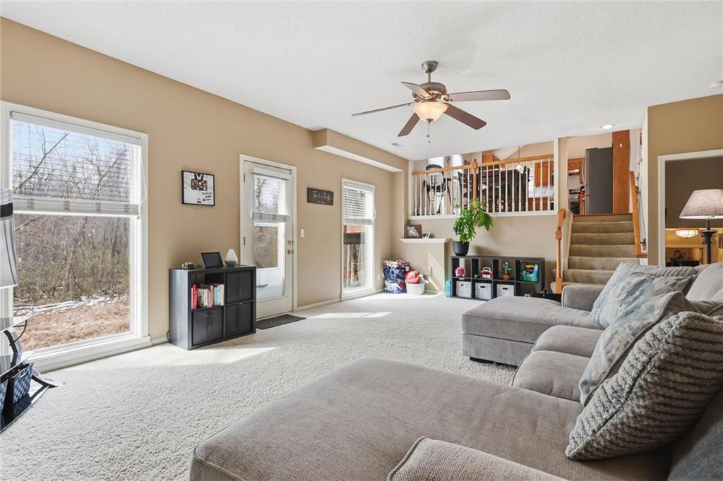 OPEN HOUSE SATURDAY 3-21, from 12-2pm. Discover this spacious and well-maintained 4-bedroom, 3-bath home featuring an oversized 3-car garage. Upon entry, you’ll find two inviting living areas and beautiful hardwood floors that extend through the kitchen and breakfast nook, highlighted by vaulted ceilings that create an open and airy feel. The Kitchen features stainless steel appliances, tons of cabinets and ample counter space, overlooking the second family room, where there is a cozy gas fireplace that adds warmth and charm to this home. To top it off, this home offers a generously sized primary suite with vaulted ceilings, a walk-in closet, and an en-suite bath complete with a jetted tub and double vanity. For added convenience, all bedrooms and the laundry room are located on the same level. And the finished basement includes a private fourth bedroom with its own entrance and bathroom—ideal for guests, extended family, or added privacy. Step outside to a backyard that backs to a wooded area, providing privacy and a setting perfect for entertaining. Conveniently located with easy access to I-35, this home offers both comfort and accessibility.