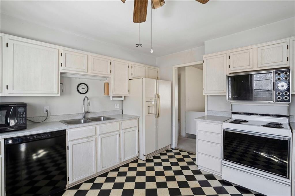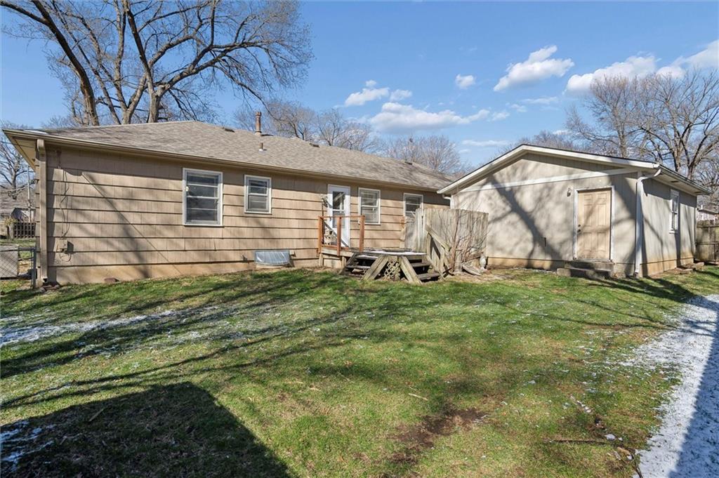 Exceptional opportunity at this classic ranch in the heart of Overland Park! This home could easily be lived in and updated over time making it perfect for the owner occupant wanting a solid investment and sweat equity. Hardwood floors under the carpet, large windows, roof 7 years old, main sewer line work in 2020, foundation work done in 2019 and the shower in the hall bath has been renovated. The primary suite features its own dedicated bathroom. Dual staircases to the basement from the garage and the living room. A 4 car garage makes this home stand out and is such a rarity to find in this part of the city. There's a 2 car attached garage plus a 2 car detached garage that was constructed in 2003. You'll love the large corner lot with fenced back yard, just shy of 1/4 acre. Truly a unique and exciting opportunity to make this home your own! Home is being sold as-is.
