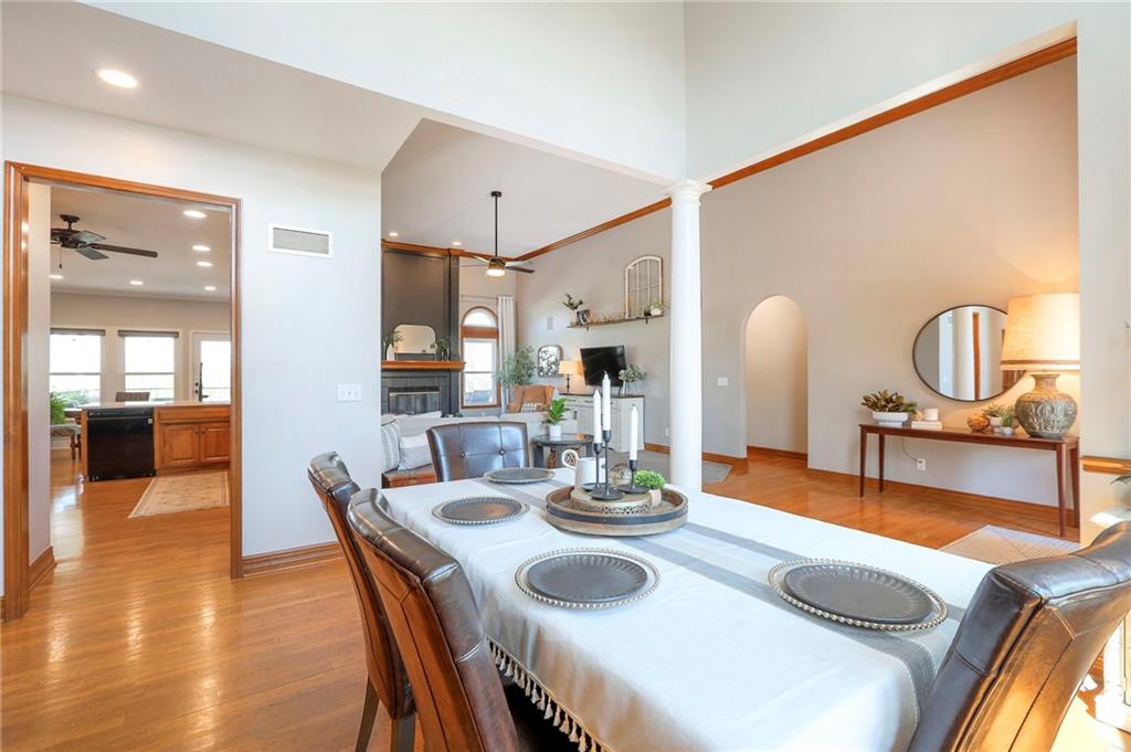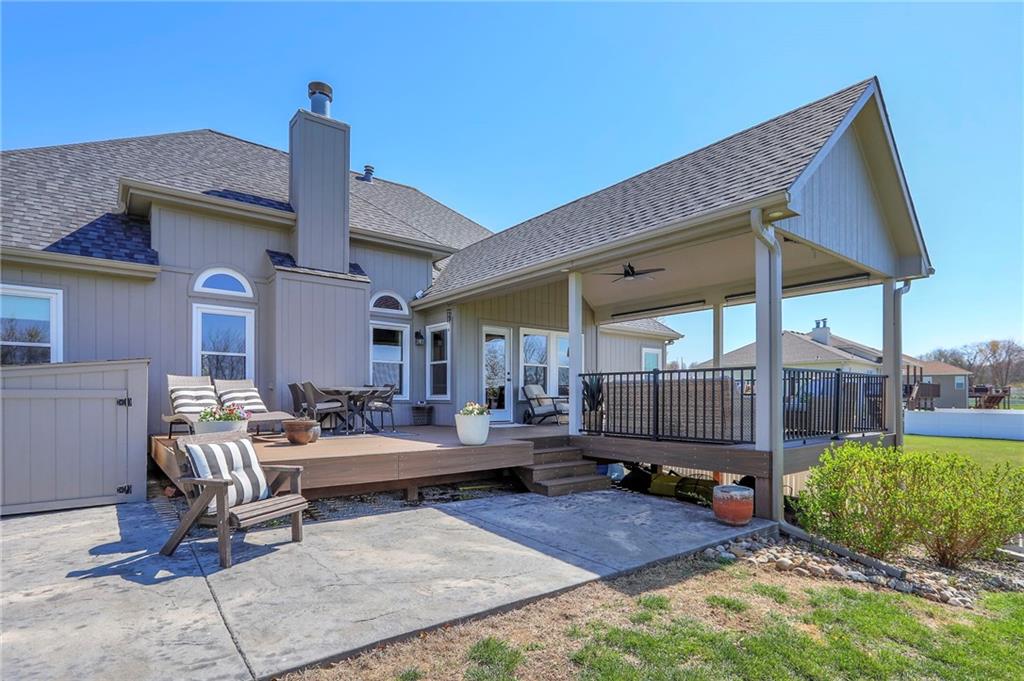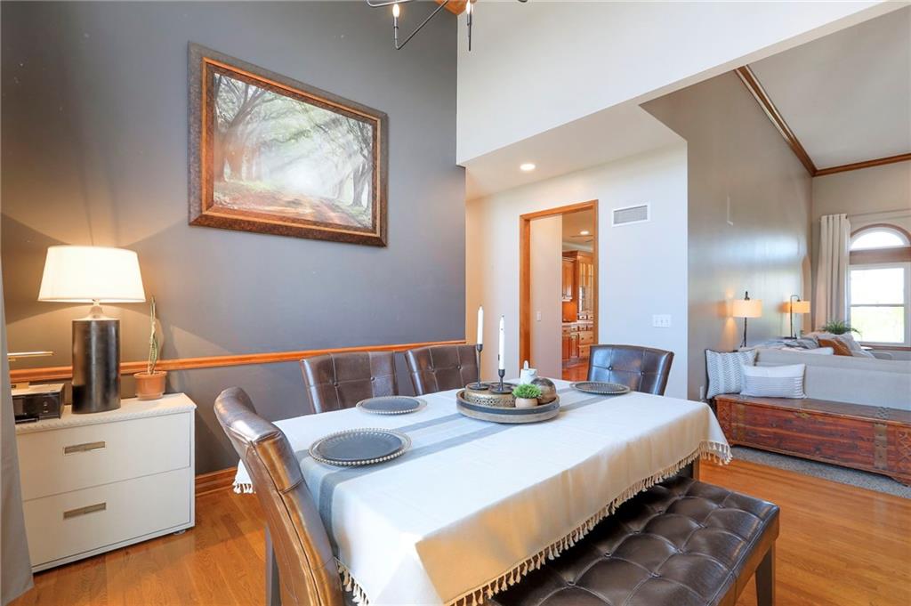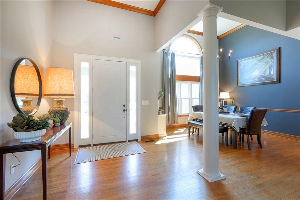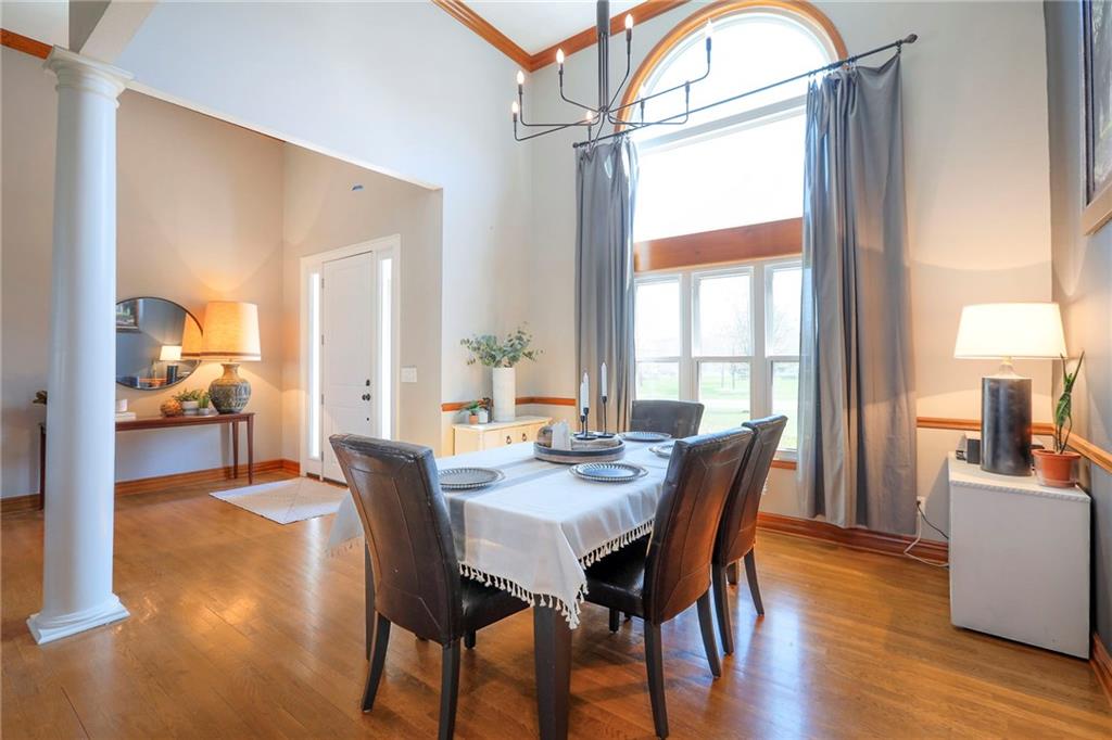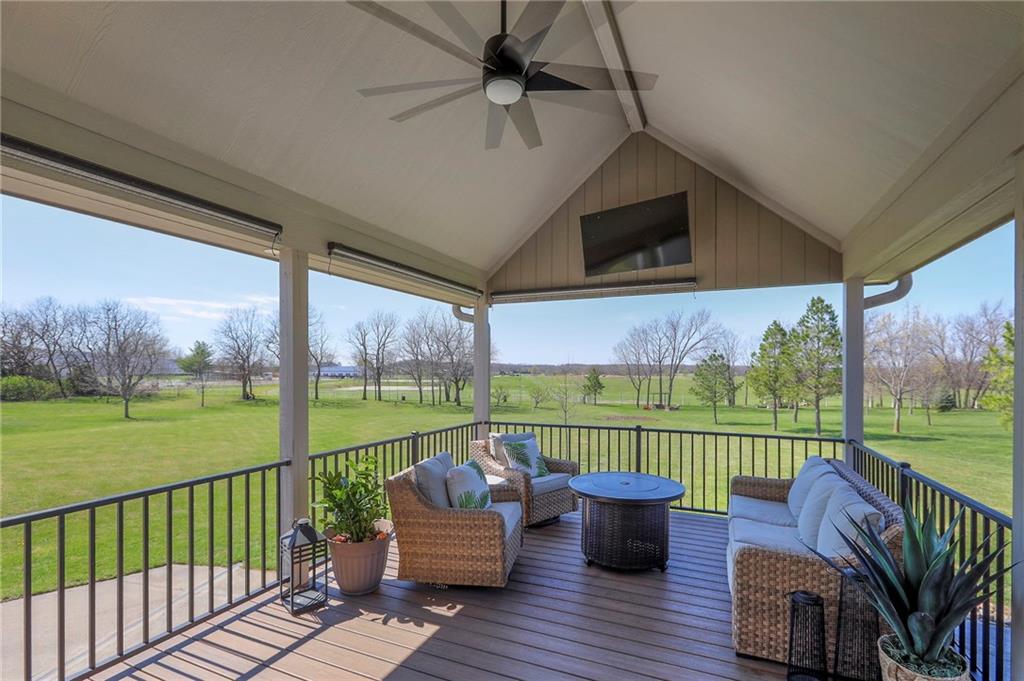 Homes in Edgewood Estates rarely come to market—even more rarely on 1.29 acres with breathtaking sunset views overlooking a horse farm. This beautifully appointed 5-bedroom, 3-bath home offers expansive living spaces, exceptional outdoor entertaining, & one of the largest lots in the neighborhood. Inside, soaring ceilings & a stately fireplace anchor the main living space, creating an atmosphere that feels both grand & welcoming. The expansive kitchen offers abundant cabinetry & workspace rarely found in newer homes, complemented by a family dining area with bar-top seating, while the formal dining room provides an elegant setting for gatherings. The primary suite offers a peaceful retreat with west-facing windows capturing spectacular sunsets, along with a generous ensuite & oversized walk-in closet. Two additional bedrooms & a spacious hall bath are positioned on the opposite side of the home, offering privacy & flexibility for additional living space or a home office. The finished lower level expands the home with a large family room, oversized recreation area with pool table space, & a fully equipped kitchenette—ideal for entertaining or a true second living space. Two additional bedrooms & a full bath add flexibility for guests, hobbies, or a home gym. With direct access from the third-car garage, the lower level creates an ideal private retreat. A safe room, generous storage, & third garage bay, currently outfitted as a woodworking shop, add additional functionality. Outdoor entertaining shines with a covered deck featuring vaulted ceilings, built-in floor outlets, mounted TV, & sunshade—perfect for sunset gatherings. A stamped concrete patio & beautifully maintained landscaping complete the outdoor setting. Located on the west side of Oak Grove in the Grain Valley School District, this Edgewood Estates property offers a rare opportunity to own a truly exceptional home.