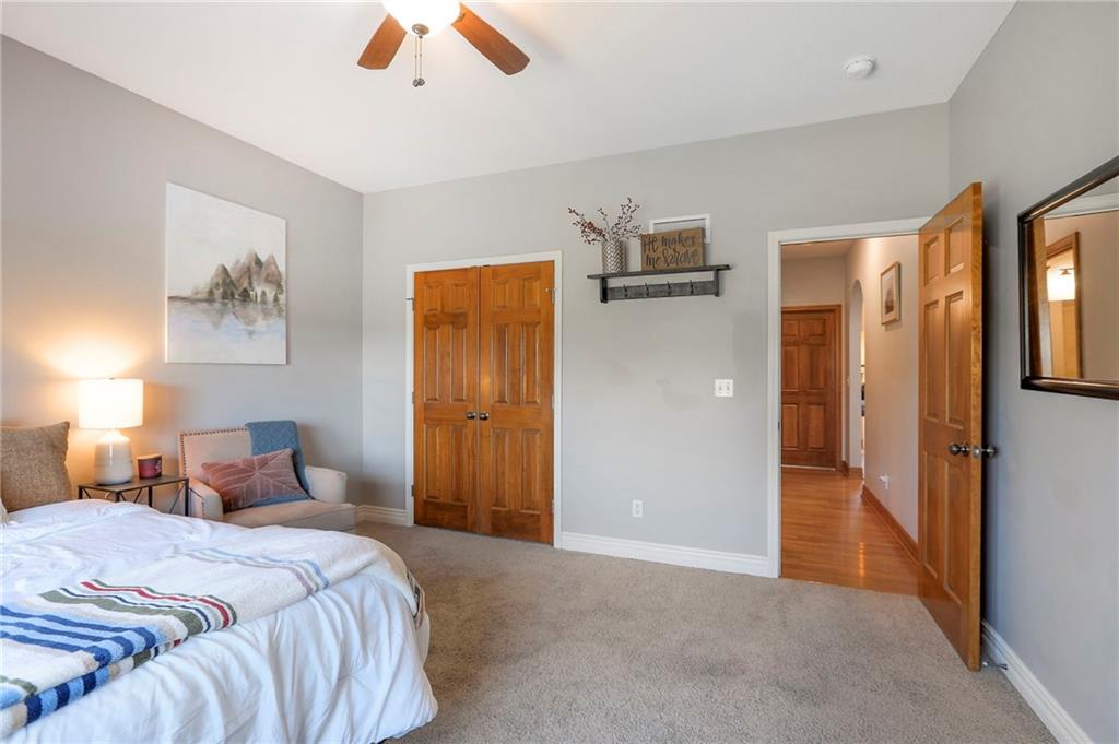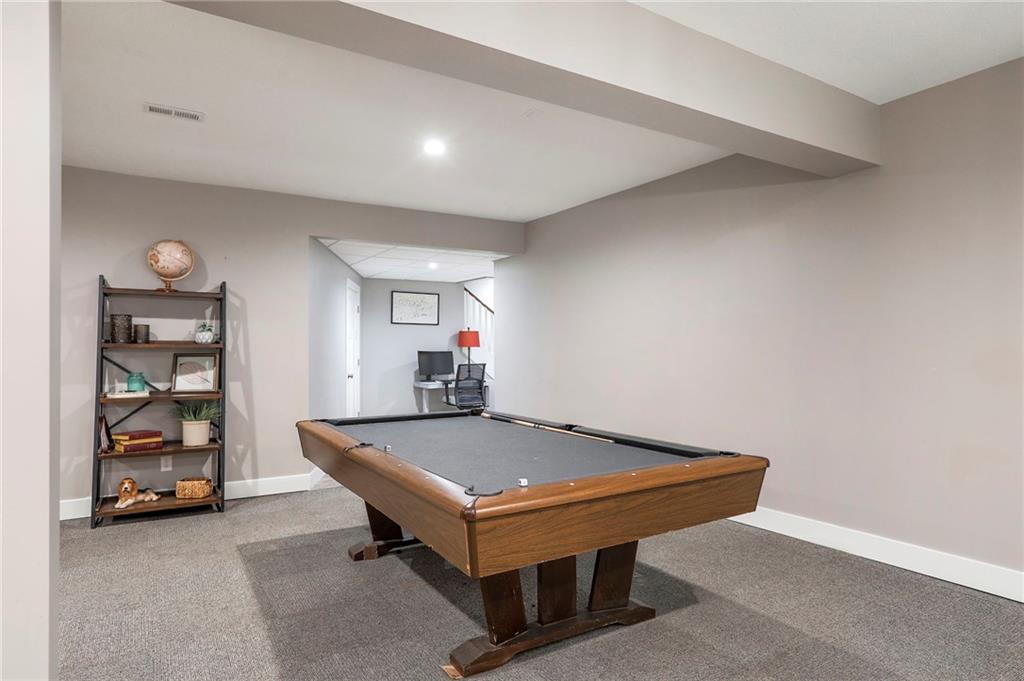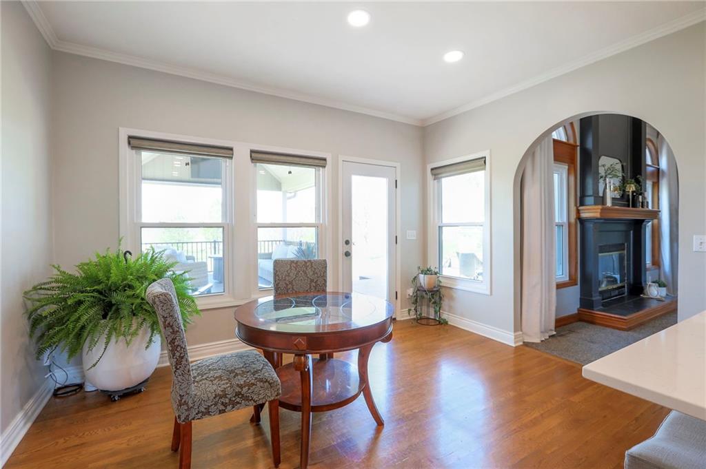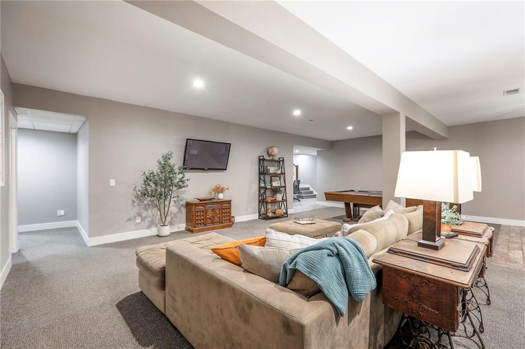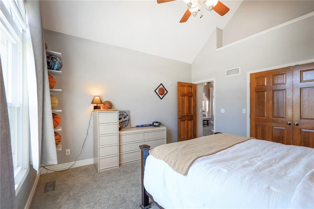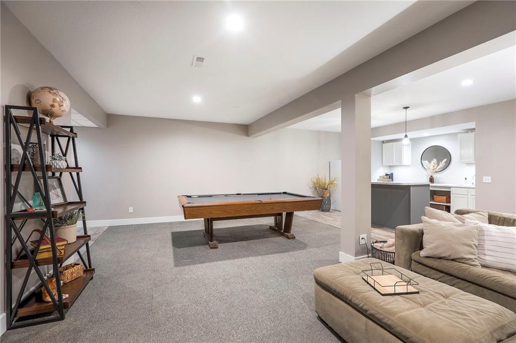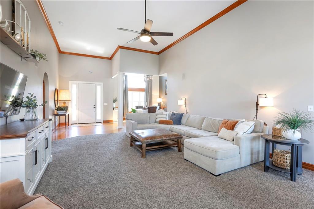 Homes in Edgewood Estates rarely come to market—even more rarely on 1.29 acres with breathtaking sunset views overlooking a horse farm. This beautifully appointed 5-bedroom, 3-bath home offers expansive living spaces, exceptional outdoor entertaining, & one of the largest lots in the neighborhood. Inside, soaring ceilings & a stately fireplace anchor the main living space, creating an atmosphere that feels both grand & welcoming. The expansive kitchen offers abundant cabinetry & workspace rarely found in newer homes, complemented by a family dining area with bar-top seating, while the formal dining room provides an elegant setting for gatherings. The primary suite offers a peaceful retreat with west-facing windows capturing spectacular sunsets, along with a generous ensuite & oversized walk-in closet. Two additional bedrooms & a spacious hall bath are positioned on the opposite side of the home, offering privacy & flexibility for additional living space or a home office. The finished lower level expands the home with a large family room, oversized recreation area with pool table space, & a fully equipped kitchenette—ideal for entertaining or a true second living space. Two additional bedrooms & a full bath add flexibility for guests, hobbies, or a home gym. With direct access from the third-car garage, the lower level creates an ideal private retreat. A safe room, generous storage, & third garage bay, currently outfitted as a woodworking shop, add additional functionality. Outdoor entertaining shines with a covered deck featuring vaulted ceilings, built-in floor outlets, mounted TV, & sunshade—perfect for sunset gatherings. A stamped concrete patio & beautifully maintained landscaping complete the outdoor setting. Located on the west side of Oak Grove in the Grain Valley School District, this Edgewood Estates property offers a rare opportunity to own a truly exceptional home.