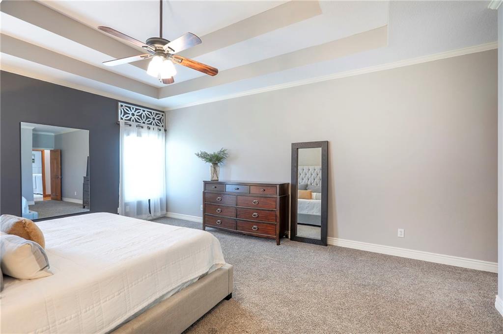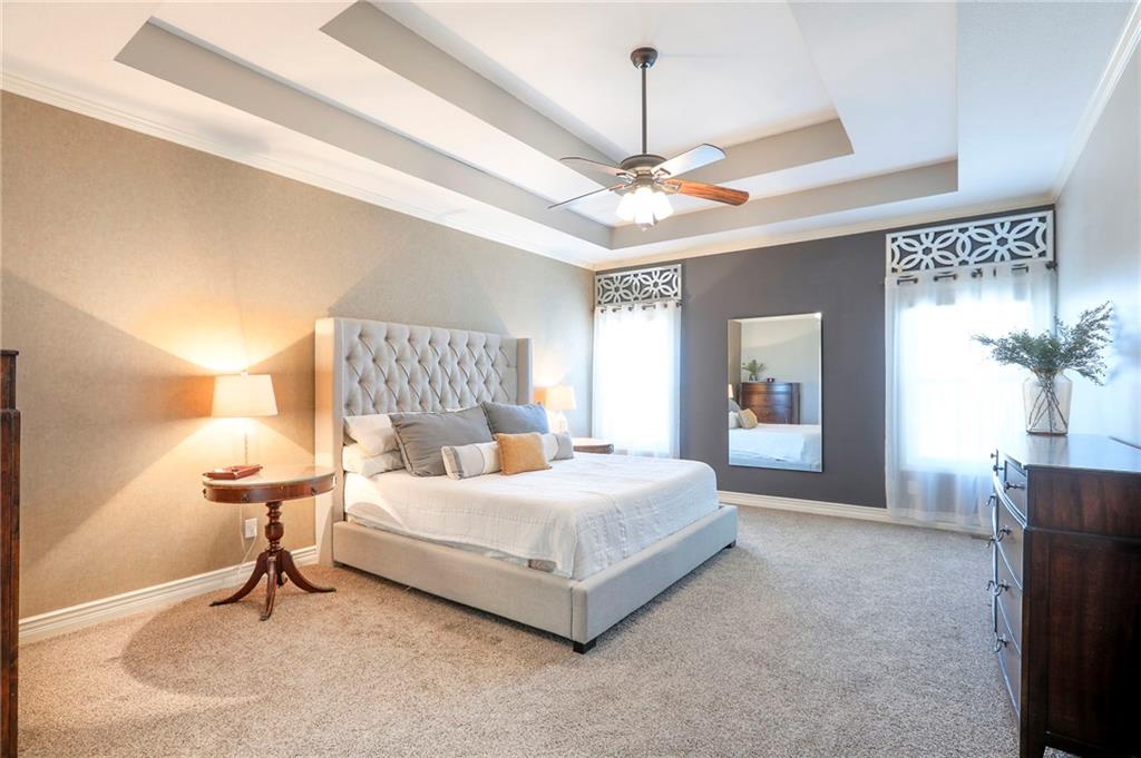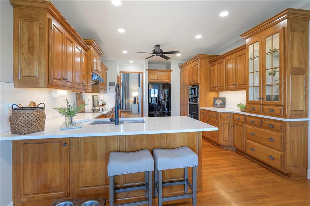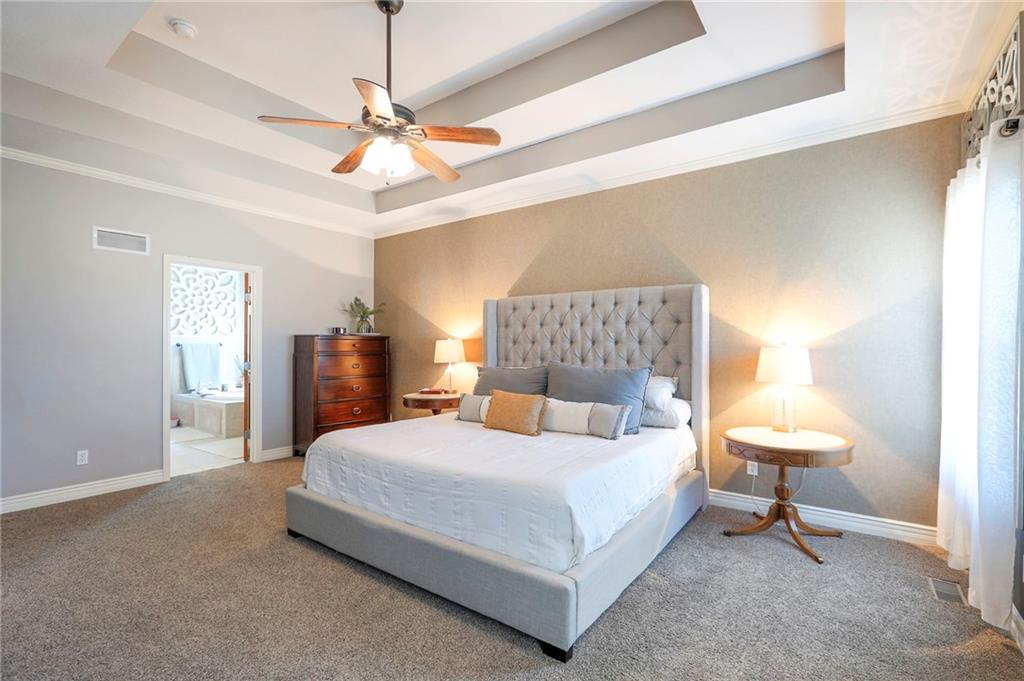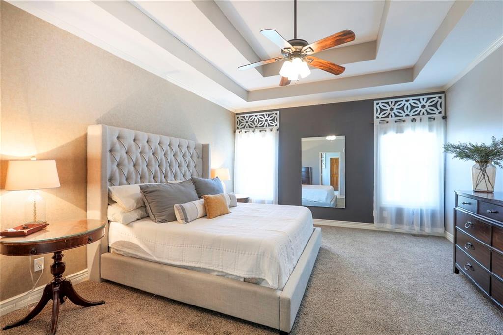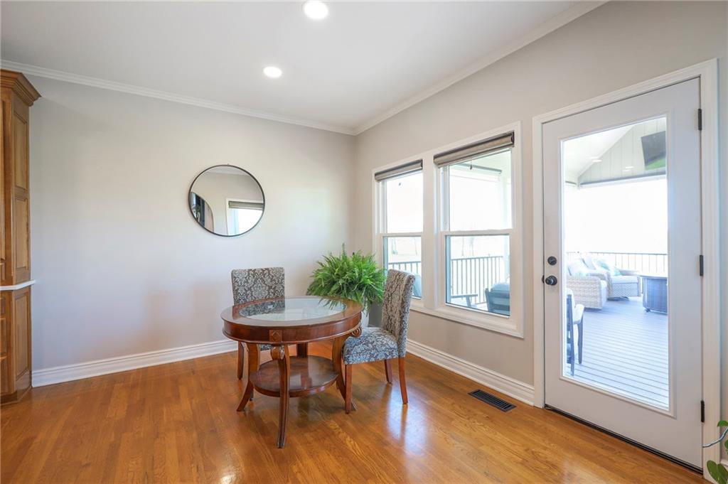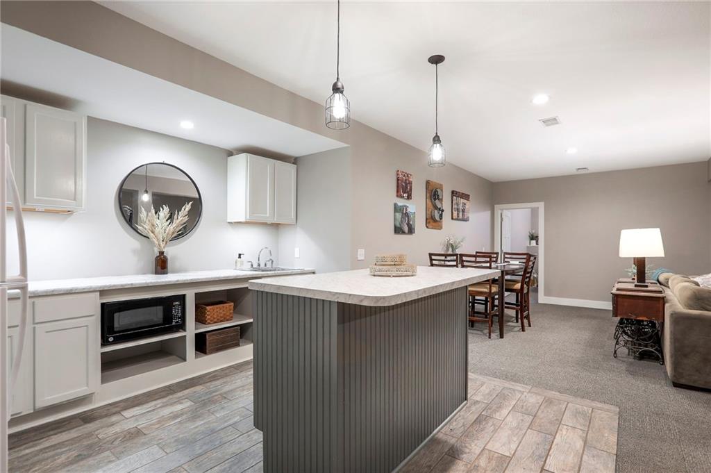 Homes in Edgewood Estates rarely come to market—even more rarely on 1.29 acres with breathtaking sunset views overlooking a horse farm. This beautifully appointed 5-bedroom, 3-bath home offers expansive living spaces, exceptional outdoor entertaining, & one of the largest lots in the neighborhood. Inside, soaring ceilings & a stately fireplace anchor the main living space, creating an atmosphere that feels both grand & welcoming. The expansive kitchen offers abundant cabinetry & workspace rarely found in newer homes, complemented by a family dining area with bar-top seating, while the formal dining room provides an elegant setting for gatherings. The primary suite offers a peaceful retreat with west-facing windows capturing spectacular sunsets, along with a generous ensuite & oversized walk-in closet. Two additional bedrooms & a spacious hall bath are positioned on the opposite side of the home, offering privacy & flexibility for additional living space or a home office. The finished lower level expands the home with a large family room, oversized recreation area with pool table space, & a fully equipped kitchenette—ideal for entertaining or a true second living space. Two additional bedrooms & a full bath add flexibility for guests, hobbies, or a home gym. With direct access from the third-car garage, the lower level creates an ideal private retreat. A safe room, generous storage, & third garage bay, currently outfitted as a woodworking shop, add additional functionality. Outdoor entertaining shines with a covered deck featuring vaulted ceilings, built-in floor outlets, mounted TV, & sunshade—perfect for sunset gatherings. A stamped concrete patio & beautifully maintained landscaping complete the outdoor setting. Located on the west side of Oak Grove in the Grain Valley School District, this Edgewood Estates property offers a rare opportunity to own a truly exceptional home.