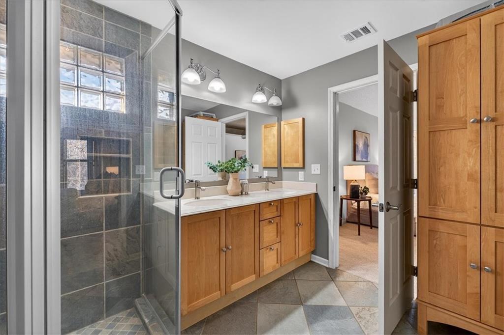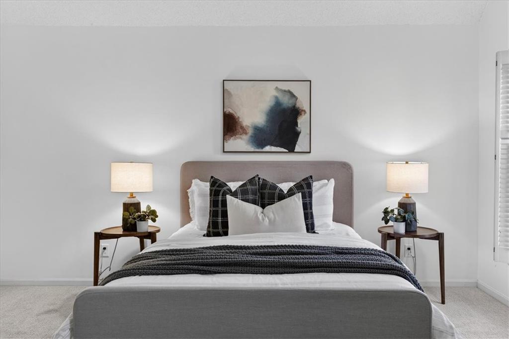 This sun-drenched, open and inviting home blends updated finishes with eco-friendly efficiency. Featuring soaring ceilings and custom walnut cabinetry, the layout is designed for both effortless entertaining and quiet retreats. The updated chef’s kitchen features walnut cabinets and a large island overlooking a fireside family room. The formal living and dining rooms complete the main floor living areas - all featuring new/refinished hardwood floors. Upstairs are three large bedrooms and two baths. The primary suite is true sanctuary with vaulted ceilings, a fireplace, a huge walk-in closet, and spa-like bath with laundry. Secondary bedrooms each have 10’ ceilings and walk-in closets. The lower level features a bonus office or rec room. Solar panels on the roof keep electric bills under $100 - even in peak summer heat. Two outdoor living spaces include a side patio and a rear deck overlooking the peaceful and private yard. So many great features including James Hardie siding, epoxy garage floors, new hardwoods, new carpet, new paint throughout main level, new LED lighting, new in-ground sprinkler system and more than $10,000 in new landscaping. Don’t miss this wonderful home close to two parks, walking trails, great shopping, restaurants, and easy highway access!