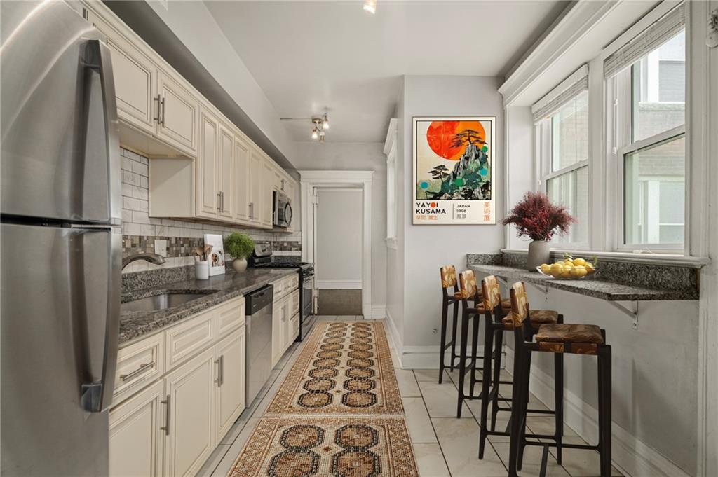 They just don't make them like the used to! Step back in time and prepare to be captivated by the charm of this property. Modern updates have been made throughout while great care was also taken to preserve historic character and details. 2 beds (with 3rd non-conforming bedroom) and 1 full bath with formal dining room, hearth room, 3 season sunroom, and balcony. Kitchen has a built-in breakfast bar, stainless steel appliances, and a pantry. All appliances stay including in unit washer and dryer! This property is truly move-in ready! Monthly HOA includes secured parking, some utilities, building maintenance, & more! Basement storage can be leased per unit. **Some photos are of a similar unit and virtually staged**