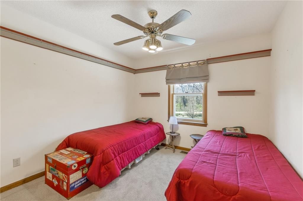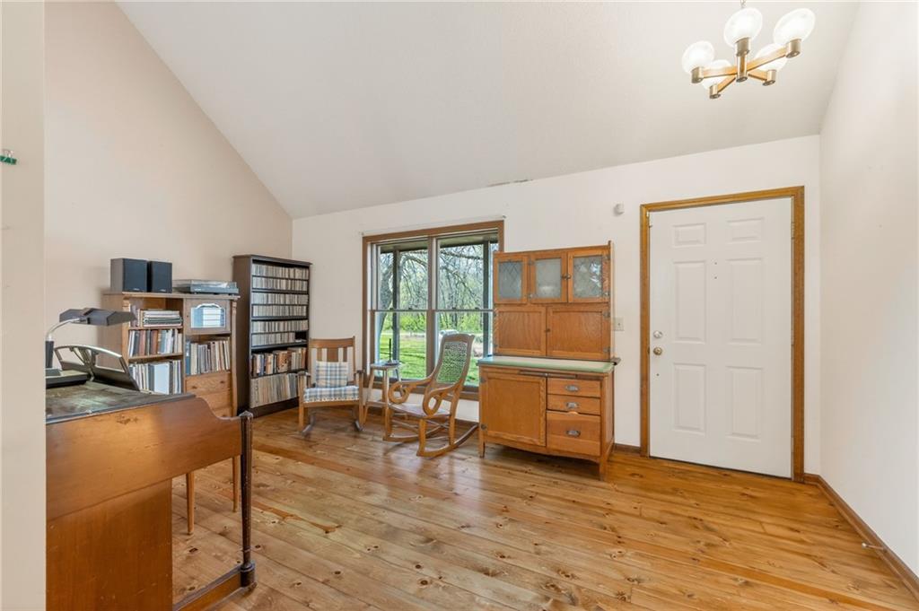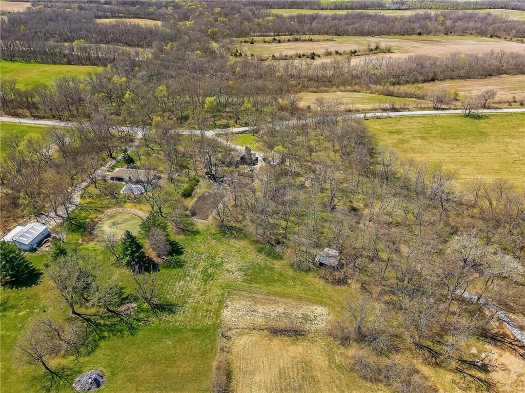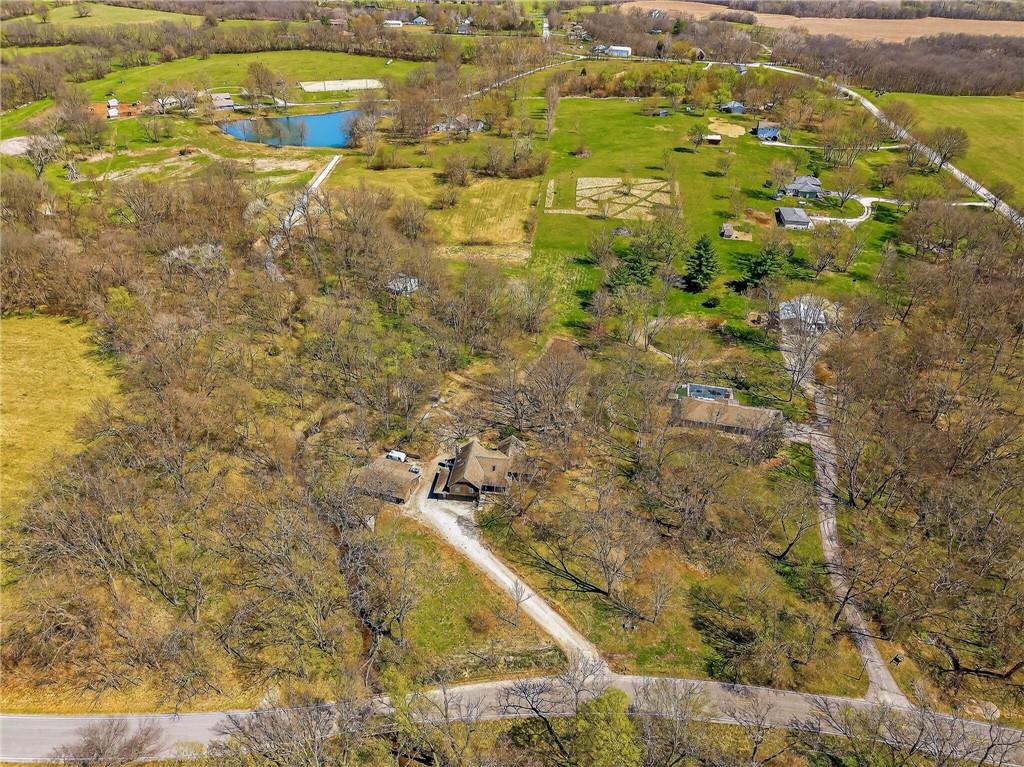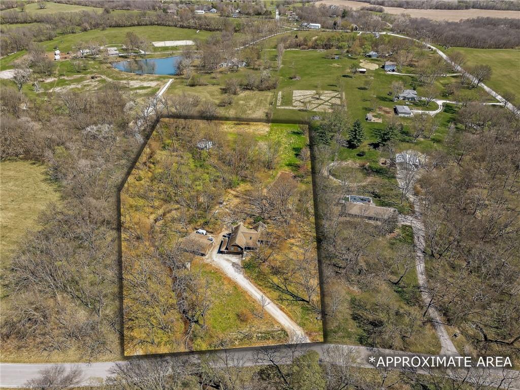 Situated on 4.8 acres in rural Clay County, this updated country home offers modern comforts in a tranquil setting. The spacious 3,924 sq ft interior (4 beds, 3 baths) was refreshed with refinished wood floors. Inside, the open kitchen boasts quartz countertops, an island workspace, and flows seamlessly into a bright dining area. The cozy family room is naturally brightened by light from the Pella windows overlooking the scenic backyard. Upstairs, the luxurious primary suite includes a private bath, walk-in closet, with two more upstairs bedrooms and a second full bath completing the upper level. A standout feature is a main-level multigenerational suite – essentially a self-contained apartment – providing a private bedroom, full bath and a convenient kitchenette with small appliances. Outside, enjoy peaceful country life on grounds ideal for farm animals, vegetable gardening, and play. Mature trees and perennial flowerbeds add year-round beauty, and a detached shop provides extra workspace or storage. In the coveted Kearney School District, this turnkey home combines tranquil country charm with a versatile layout. Its integrated multigenerational suite truly makes it perfect for extended-family living or hosting guests.