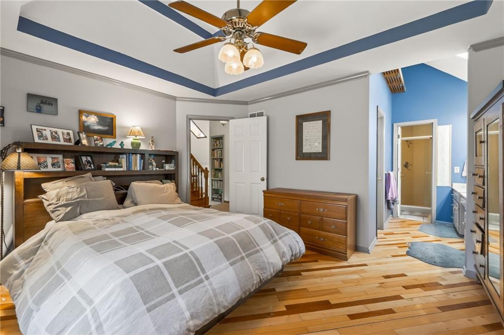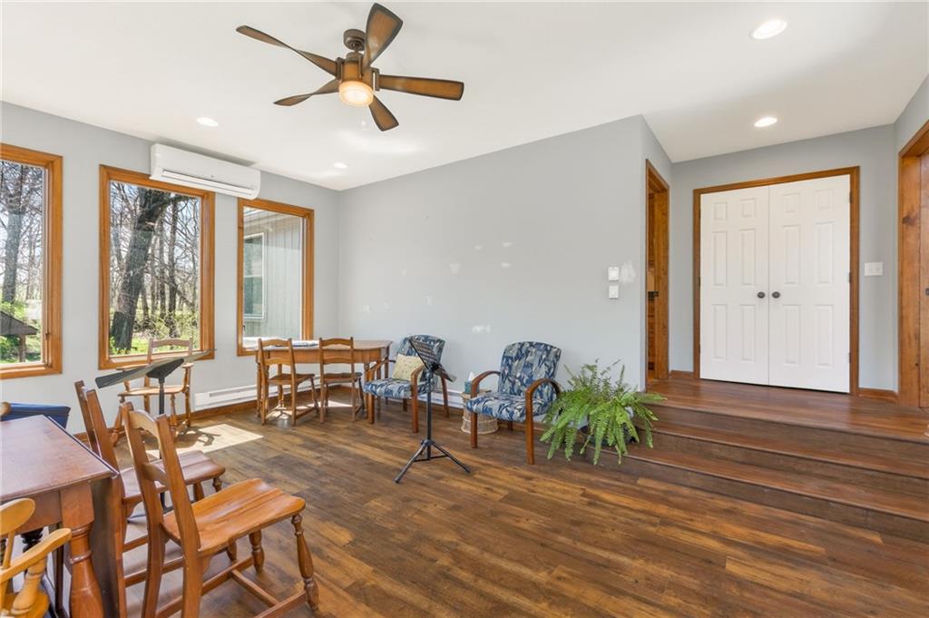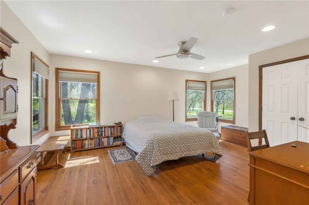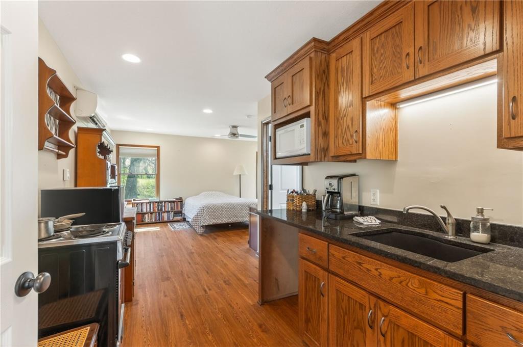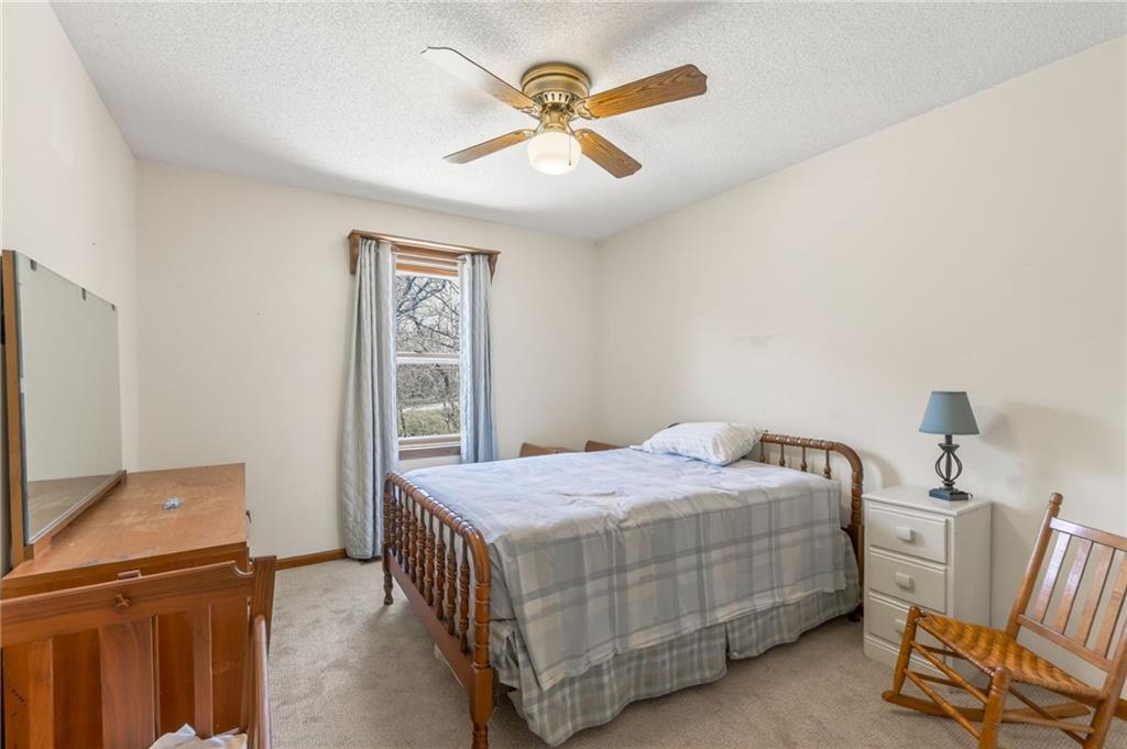 Situated on 4.8 acres in rural Clay County, this updated country home offers modern comforts in a tranquil setting. The spacious 3,924 sq ft interior (4 beds, 3 baths) was refreshed with refinished wood floors. Inside, the open kitchen boasts quartz countertops, an island workspace, and flows seamlessly into a bright dining area. The cozy family room is naturally brightened by light from the Pella windows overlooking the scenic backyard. Upstairs, the luxurious primary suite includes a private bath, walk-in closet, with two more upstairs bedrooms and a second full bath completing the upper level. A standout feature is a main-level multigenerational suite – essentially a self-contained apartment – providing a private bedroom, full bath and a convenient kitchenette with small appliances. Outside, enjoy peaceful country life on grounds ideal for farm animals, vegetable gardening, and play. Mature trees and perennial flowerbeds add year-round beauty, and a detached shop provides extra workspace or storage. In the coveted Kearney School District, this turnkey home combines tranquil country charm with a versatile layout. Its integrated multigenerational suite truly makes it perfect for extended-family living or hosting guests.