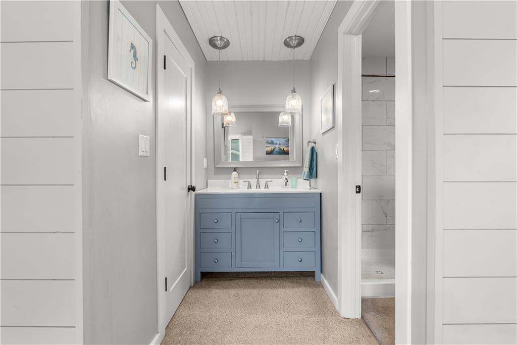 Come live the lake life in this gorgeous 2nd tier home! Enjoy the beautiful view of the lake from the large front porch and relax on the huge, private, treed backyard deck. Plenty of wild life to enjoy around the firepit area. This cozy updated home gives off a lovely beach vibe with adorable ship lap, open floor plan, fireplace, and plenty of storage room in the upstairs attic space. Vaulted ceilings, hardwood and LVP throughout, and the kitchen is a show stopper. Granite, kitchen island and all appliances stay with the home (including the washer and dryer in the oversized laundry room) and a bonus sunroom/office space right off the kitchen with an outstanding view of the backyard. The finished lower level offers a fireplace and full bathroom - could easily be a 4th bedroom area. Roof age 8 years, HVAC 4 years new, hot water tank 3 years new and all suggested foundation work has been completed (see supplements). Completely move-in ready so you can start enjoying the lake life while also enjoying nature in the privacy of your backyard! No dock registered to property but easy access to the lake right down the street.