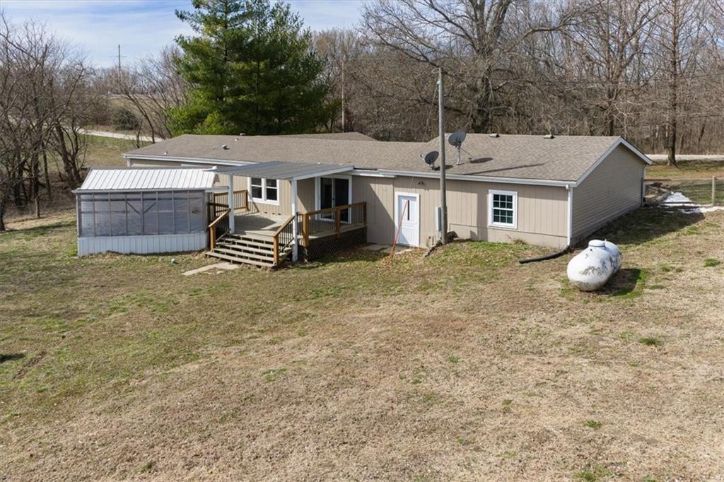 Tucked away on the some of the most peaceful ground in Leavenworth county, you will find this beautifully updated 3 bed 2 bath home with an oversized 2 car garage. It truly is something you must just see in person to appreciate...The land, the quietness, the sights and sounds all make you fall in love with this 6.7 acre piece of heaven that is the perfect mix of pasture and woods. If you are looking for a place to get away from the hustle and bustle, this place is just what you've been searching for. Step Inside where you will find two oversized living/ family rooms featuring a wood burning stove for cost efficient heating in the wintertime, generous sized bedrooms, a formal dining room, granite kitchen island with loads of kitchen cabinets, and a master suite to absolutely die for... this mater bathroom is AMAZING! From the jetted tub to the gorgeous walk in shower you will be in aww! Step on the back patio and take in the views of the pond from your coved deck and dream up your picture perfect garden in your very own green house! Now, for the outdoor enthusiasts you can enjoy the 1 acre stocked pond and spend your summers catching bass, crappie and bluegill till your hearts content or spend your fall and winter harvesting the great Kansas wildlife game (trophy bucks, bobcats, turkey, geese, coyotes and more!) that follow the year round spring fed creek, spend your spring days hunting for the morel mushrooms along the creek banks and your nights under the stars by the stream.. this 6.7 acre retreat really has it all. The property offers a lean-to with fencing for horses/ livestock already in place as well! If you are looking for a simpler way of life or looking to give your kids a childhood they'll never forget in the country without that high price tag.. this one is it!