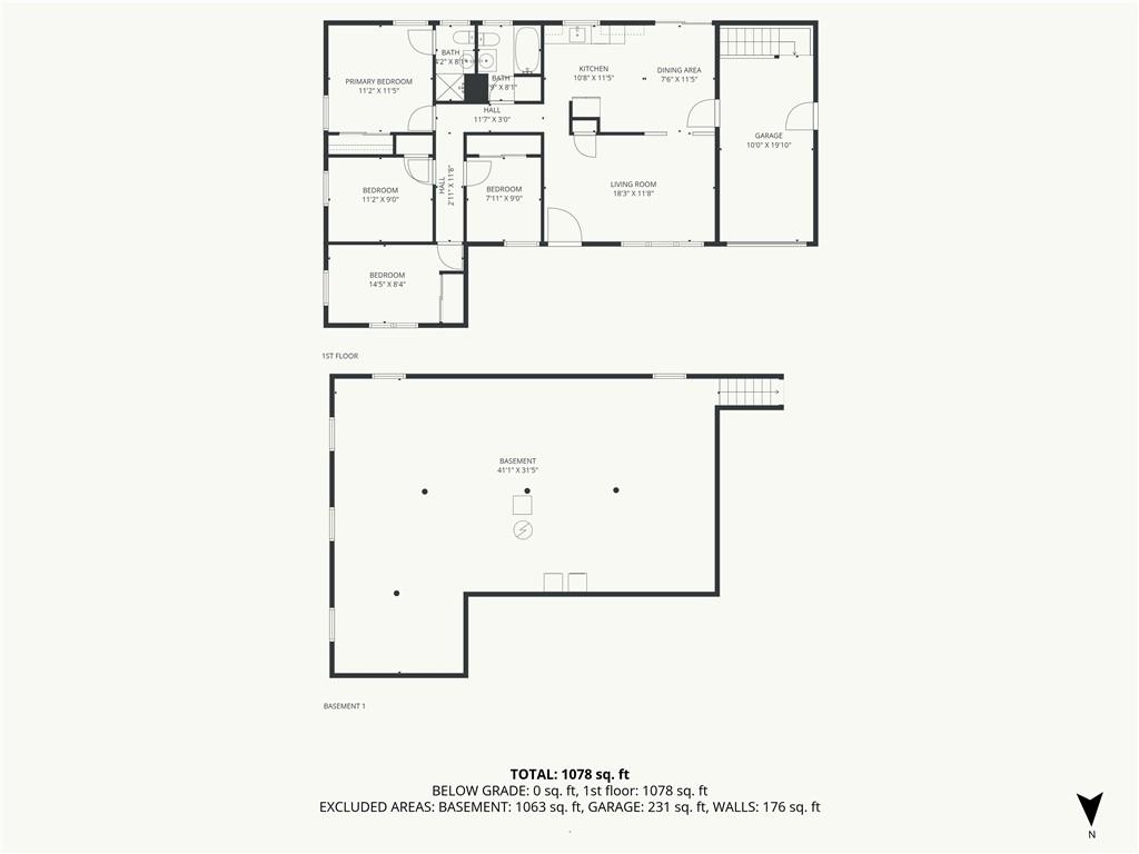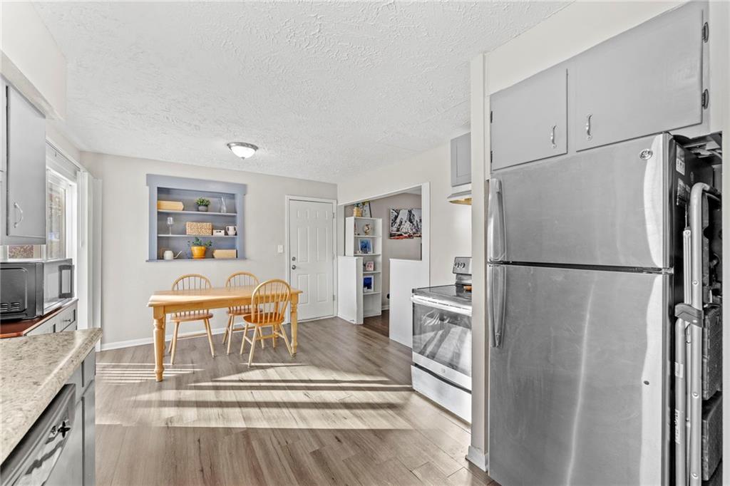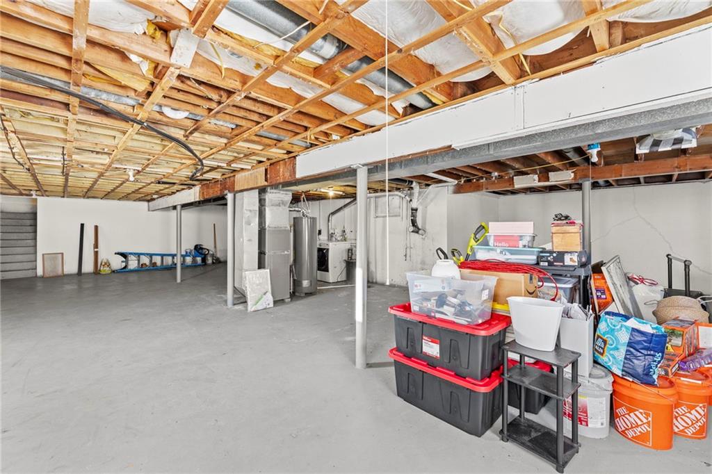 Rarity in this area: charming ranch home with 4 bedrooms, 2 full bathrooms, and spacious lot with mature trees. Hardwoods throughout main level, luxury vinyl plank flooring for durability in wide kitchen. All bedrooms have ceiling fans for comfort, newer windows all around. Kitchen has double sink under picture window overlooking the yard, kitchen exits to back deck. Fridge and washer/dryer stay with the home, along with outdoor fire pit! Primary bedroom has its own full bath, and second full bathroom is in the hall. Large basement perfect for storage or ready for you to finish as optional play area, or a workout, craft, or carpentry area.