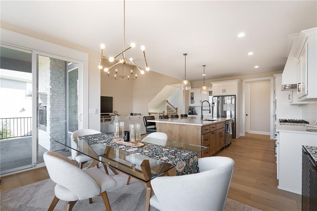 Stunning Award-Winning 1.5-Story will back to the future Blue Valley elementary school. This floor plan is designed for luxury and functionality. Thoughtful details include wood end caps, iron spindles, and vaulted ceilings, creating an elegant and spacious feel. The see-through fireplace seamlessly connects the great room to the covered patio, perfect for indoor-outdoor living. The center-island kitchen shines with painted cabinetry, offering both style and practicality. The main-level owner’s suite is a true retreat, featuring an oversized closet and a spa-like walk-in shower with dual shower heads. The office located off the entry provides the perfect work-from-home or study space. Tesla charger installed in garage stays with the home. Sundance Ridge’s premier amenities are now open! Enjoy a state-of-the-art fitness center, a resort-style pool, and scenic nature trails. Planned future amenities include a full gymnasium, pickleball and bocce ball courts, a playground, and a community garden. Clubhouse & first pool now open! Don’t wait—schedule your tour today!
