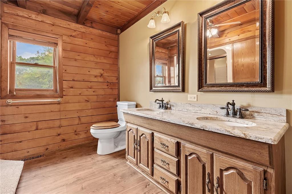 Rare opportunity to own two homes on 9.70± acres! The main home features 3-bedrooms plus a non-conforming 4th, 3 full-bathrooms, soaring ~25-ft vaulted ceilings, newer flooring throughout, a finished basement, and a 1-car attached garage with carport. The guest home offers 2-bedrooms, 2-full bathrooms, accessibility features, newer flooring, and an enclosed hallway connecting to the 30'x30' 3-car garage for true main-level living. The property showcases a beautiful mix of woods and pasture, a large front pond with dock, and full perimeter fencing—with nearly 5 acres separately fenced, ideal for animals or a future build site. Truly a unique blend privacy, functionality, and rustic charm! Additional highlights include a new 2-car bay garage door, wood-burning fireplace in living room, spacious front porches on both homes, EV charger, hen house, chicken coop, and horse corral. Don't wait! Schedule a tour of this not-often-seen property today!