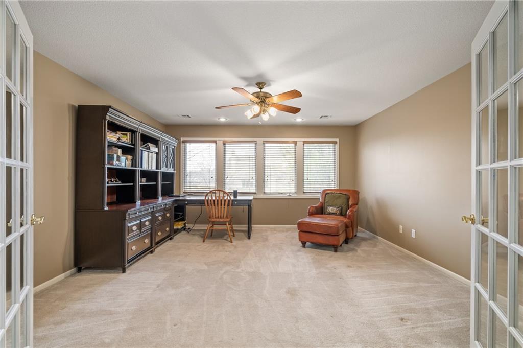 Welcome home to a remarkable 1.5-story residence in Wellington Park Parkside, quietly situated on a cul-de-sac. This home features a formal living room with plantation shutters, a hearth room, and a spacious kitchen equipped with an island, pantry, and breakfast nook, along with a formal dining space and a dedicated office. The master suite offers a walk-in closet with a custom system and an updated, spa-inspired bathroom. Upstairs includes three generously sized bedrooms, each with walk-in closets—one with an en-suite bath and two sharing a Jack-and-Jill bathroom. The substantial loft/media room, enclosed by French doors, provides an ideal space for gatherings. The fully finished walk-out, walk-up basement includes a half bath, wine cellar, expansive recreation areas, a bonus room, and ample unfinished storage. The backyard is well-suited for entertaining, featuring both a deck and patio with a fireplace. Neighborhood amenities include a swimming pool, clubhouse, playground, and newly refinished tennis/pickleball courts. The property is conveniently located near schools, shopping, restaurants, and highways. This property is a fabulous place to call home!!!