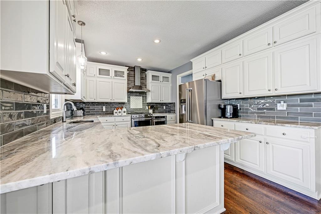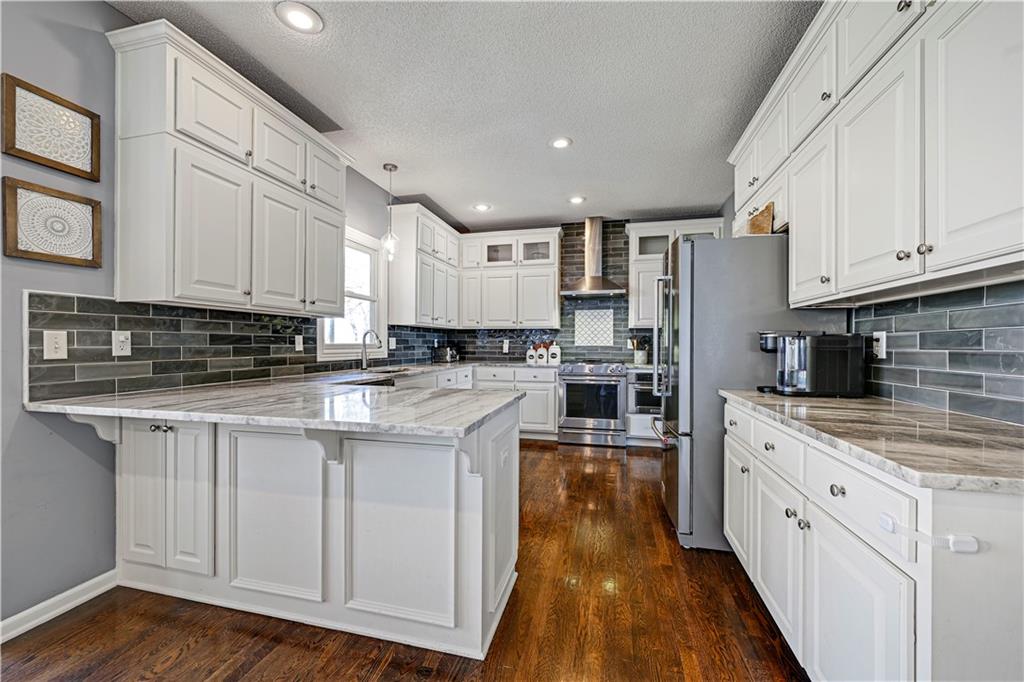 This beautifully updated 5-bedroom, 3.5-bath home in sought-after Brampton Park truly has it all! The dream kitchen features custom cabinetry, marble countertops, and classic subway tile, all opening seamlessly to a spacious great room with fireplace and built-ins—perfect for everyday living and entertaining. Gorgeous hardwood floors shine! Upstairs, the primary suite offers a spa-like bath with dual vanities, a corner tub, large shower, and separate his-and-hers walk-in closets. Three additional generously sized bedrooms complete the upper level. The finished basement adds even more living space with a 5th bedroom and full bath—ideal for guests or a private retreat. Situated on a large lot with a sprinkler system and backing to tree line. Major updates including a new zoned HVAC system and most windows are new. Located in the highly desirable Olathe School District—this is one you don’t want to miss. Schedule your showing today!