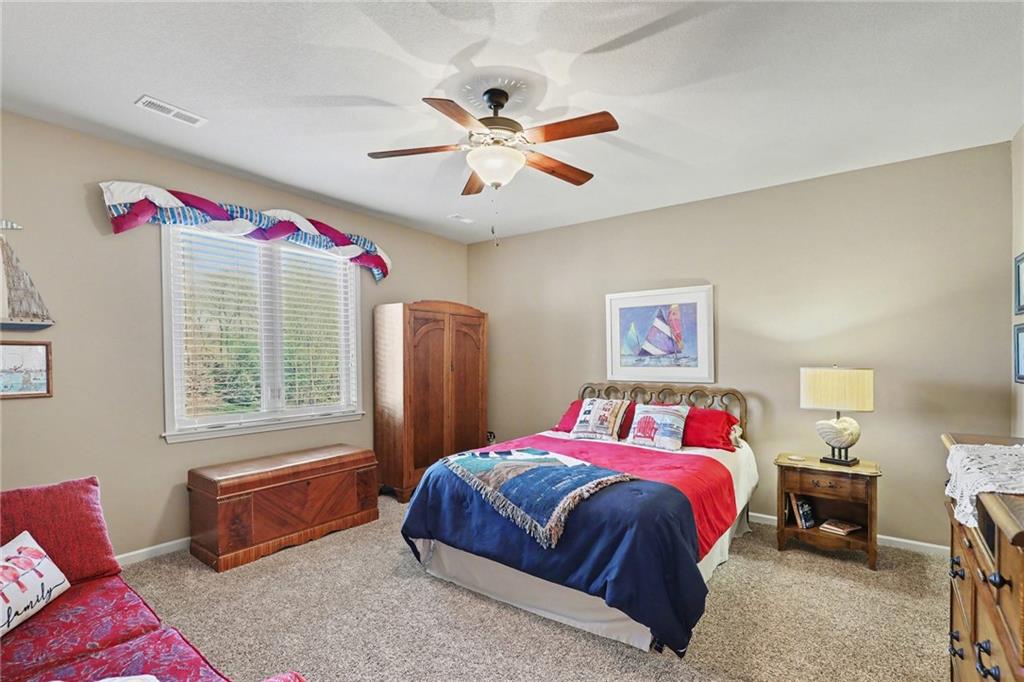 Here is your chance to get into Weatherby Lake to enjoy all the lake activities for the summer! Boating, swimming, kayaking, paddleboard, fish or just relax and soak up the sun! West Ridge area on the West side of the city, is the newest area of homes and this is your opportunity to own a gently lived in and meticulously maintained main level living home. Situated on a culdesac lot with mature trees to enjoy nature while sitting on your covered deck. The open concept plan has a wall of windows to enjoy the views, stone fireplace surrounded by custom built ins, chefs kitchen with gas cooktop / walk in pantry / spacious granite counter island, all perfect for your gatherings. With most of the main level having gleaming hardwood floors and rich architectural details including extensive crown molding and lofty ceilings. A primary suite with all the upgraded details is on one side of the home to create a private retreat. The primary bath includes a tub, walk in tiled shower, double vanity with granite counters and a light filled walk in closet. On the opposite side of the home is the secondary bedroom and second full bath for guest use or private entry from the bedroom. The walkout basement is perfect for entertaining with a granite counter wet bar area, media area and game area. This walks out to a lower level deck to the backyard. Bedrooms 3 and 4 are in the basement with amazingly large walk in closets! The 3rd full bath with granite and tile features is situated between the bedrooms. Plenty of unfinished storage to support your needs. Additional features include custom plantation shutters, custom window coverings, water purification system, kitchen refrigerator stays, zoned heating and cooling, and 1 year old roof and gutters. Flat, South facing driveway with 3 car garage. Come join this vibrant community with activities for all ages. Small town feel and private lake for residents to enjoy!