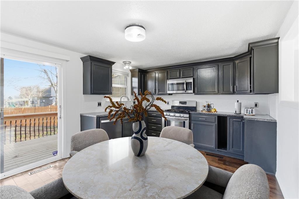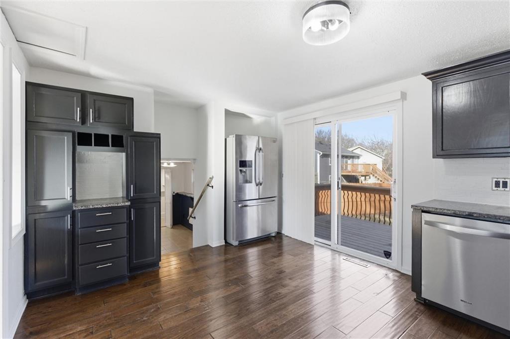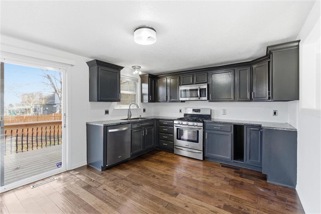Welcome home to this charming 3-bed, 1.5-bath on a quiet cul-de-sac with a 2-car garage. The inviting front porch welcomes you into a bright living room featuring a bay window and dark wood laminate flooring throughout the main level. The eat-in kitchen impresses with granite countertops and a refrigerator that stays. Step outside to a newly resurfaced deck with updated railings overlooking a fully private fenced backyard, recently seeded for spring, great for entertaining or letting the kids and pets roam. The main bedroom connects to a full bath with double sinks and a bathtub/shower combo, also accessible from the hallway, with cozy carpet in all bedrooms. The lower level off the kitchen offers flexible space perfect for a rec room or home office, with laundry conveniently located. The partially finished basement adds even more living space, a half bath, and ample storage with built ins for organization. Newer roof, furnace and AC. Quick highway access and conveniently located near Frisco Lake for quick access to walking paths, playgrounds, fishing, and more.