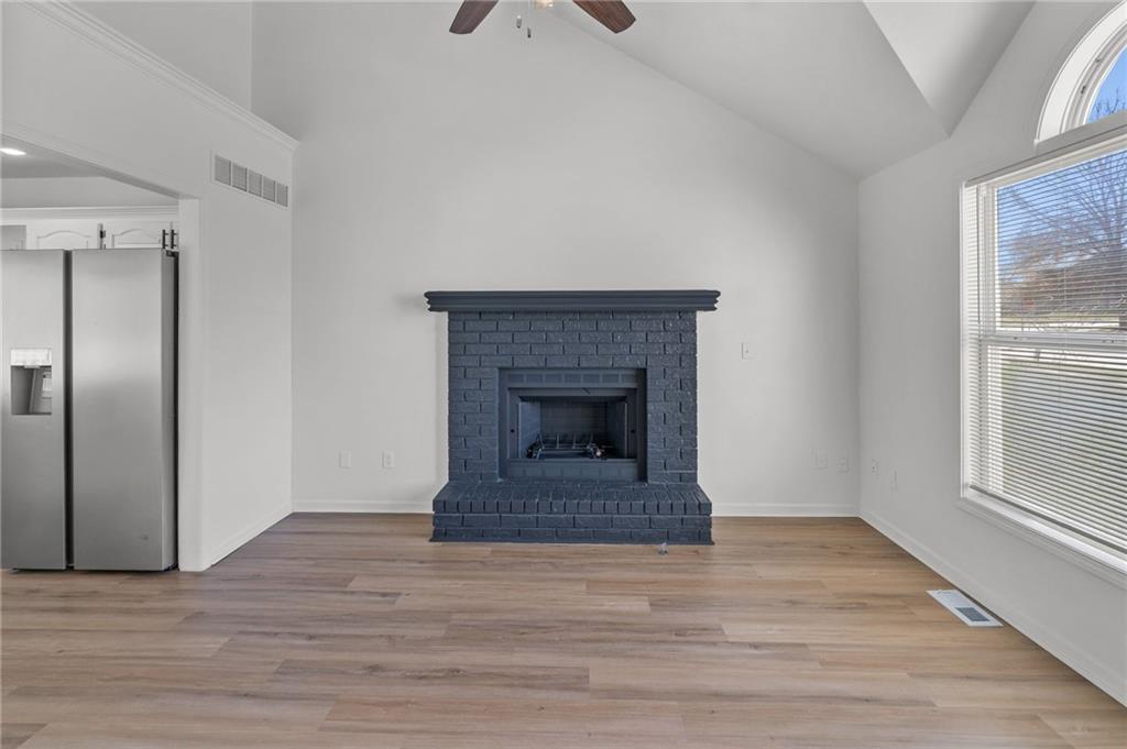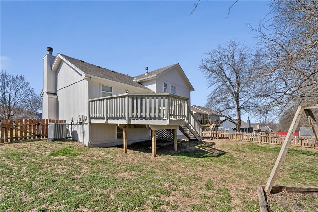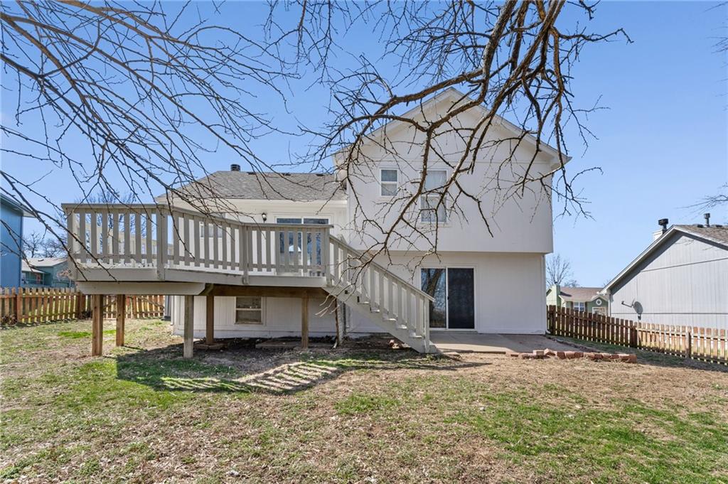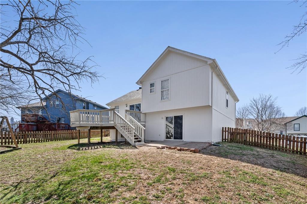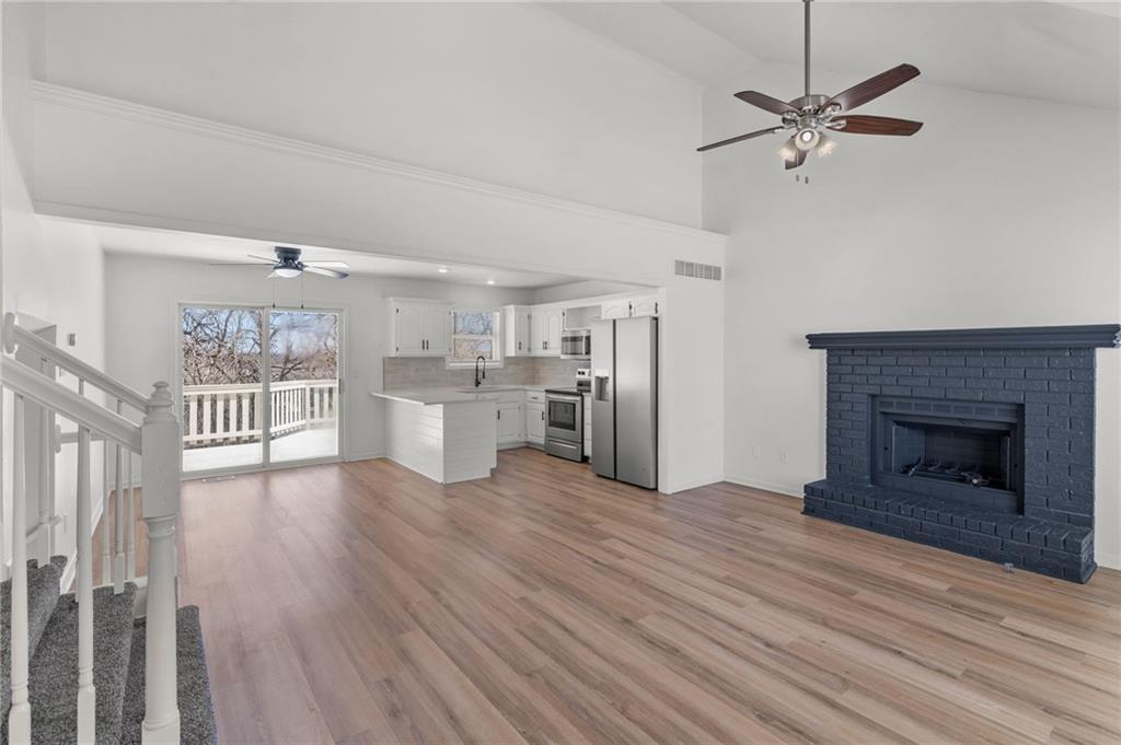 BEAUTIFULLY Updated and Move-in ready, this side-by-side split offers the perfect blend of modern finishes and functional living spaces. Main level welcomes you with a vaulted great room featuring a cozy fireplace, luxury vinyl flooring and an open layout ideal for everyday living and entertaining. Light-filled white kitchen shines with stainless steel appliances, quartz countertops and flows seamlessly into the dining area, where sliding doors lead to a spacious deck—perfect for indoor/outdoor gatherings. Upstairs, the primary suite boasts a private en-suite bath, while two additional bedrooms share a second full bath. Convenient bedroom-level laundry adds ease to your daily routine. The lower (garage-level) family room provides additional living space and walks out to a patio, offering another great spot to relax or entertain. A fourth bedroom in the basement adds flexibility for guests, a home office or workout space. Enjoy the fully fenced backyard and a fantastic location close to shopping, dining and quick highway access. JUST BRING YOUR DECOR AND MOVE RIGHT IN! WELCOME HOME!
