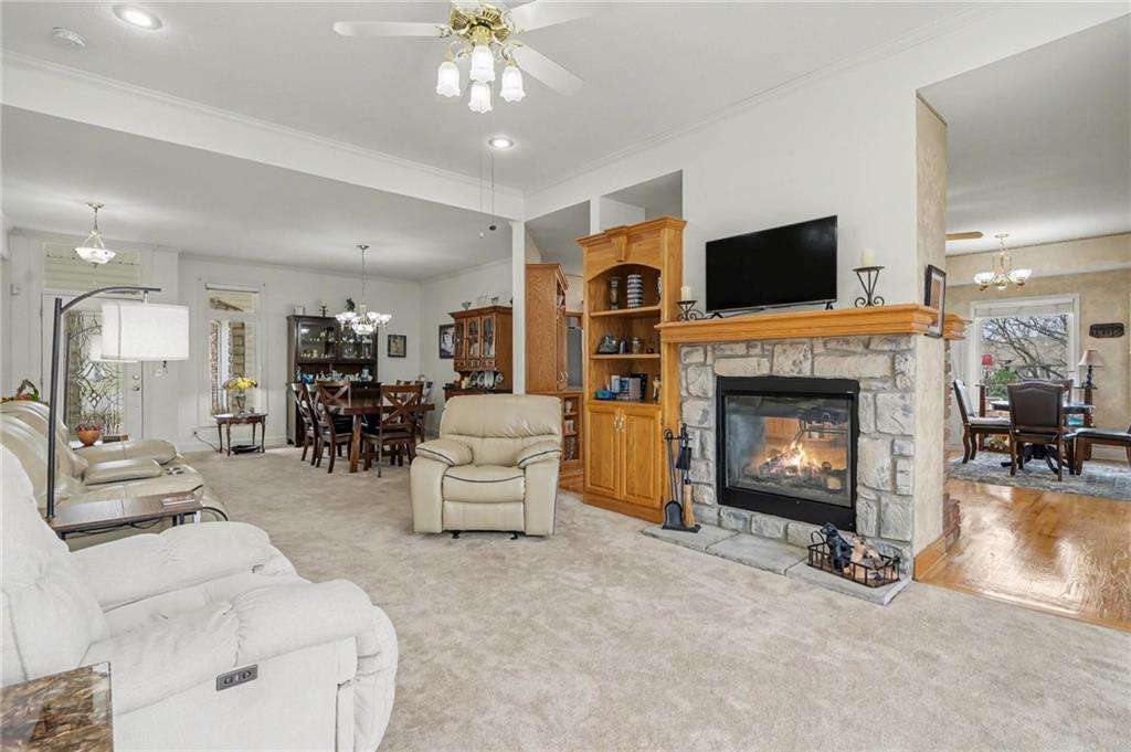 Located in a highly desirable 55+ community, this exceptional home sits on a quiet cul-de-sac and boasts one of the largest lots in the neighborhood, offering rare privacy with no homes behind you, just mature trees, open space, and frequent deer sightings. The HOA provides true low maintenance living, covering lawn care, snow removal, sprinkler system maintenance, and trash service. As one of the largest homes in the community, this residence offers expansive square footage, abundant storage, and a finished walkout lower level, along with an additional unfinished basement area for even more flexibility. Designed for both everyday comfort and entertaining, the home features beautiful built ins, a formal dining room, and a spacious eat in kitchen. The chef’s kitchen is equipped with three ovens, including a separate double oven setup that functions perfectly as a butler’s pantry, ideal for hosting gatherings with ease. The main level primary suite includes a recently completed $14,000 bathroom remodel, adding a fresh, modern touch to your private retreat. Updated bathrooms throughout the home further enhance its appeal. Enjoy multiple indoor outdoor living spaces, including a bright sunroom, a covered patio, and a screened in covered patio, perfect for relaxing in every season. Additional highlights include a whole house built in vacuum system, true main level living, flexible living spaces, and generous storage throughout. Conveniently located near shopping, dining, and everyday amenities, this home offers the perfect balance of accessibility and peaceful, nature filled surroundings.