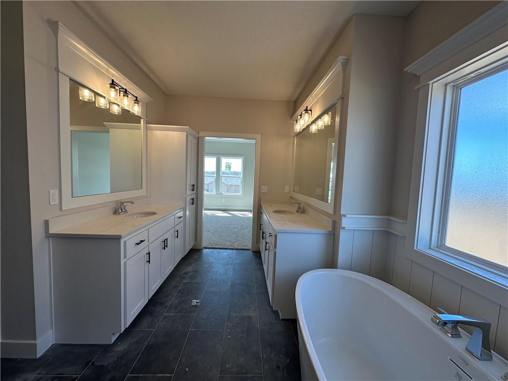 COMPLETED HOME!!Prieb's Dakota reverse 1.5 plan on a quiet culdesac street.Open floor plan with soaring ceilings and lots of natural light. WALKOUT lot with 17'x10' deck. Primary bedroom on main with gorgeous stand-alone garden tub and large walk/in shower. Laundry right off main for easy access. Functional boot bench with storage galore that is perfect walking in the door. Finished LL with additional large windows providing tons of light, 2 secondary bedrooms and a full bathroom. Great rec space with wet bar for entertaining, come enjoy the views and make this home your own! This home's exterior includes additional stone and upgraded black roof for maximum curb appeal. Home to be completed May 2026. some photos of previously completed home.