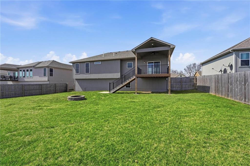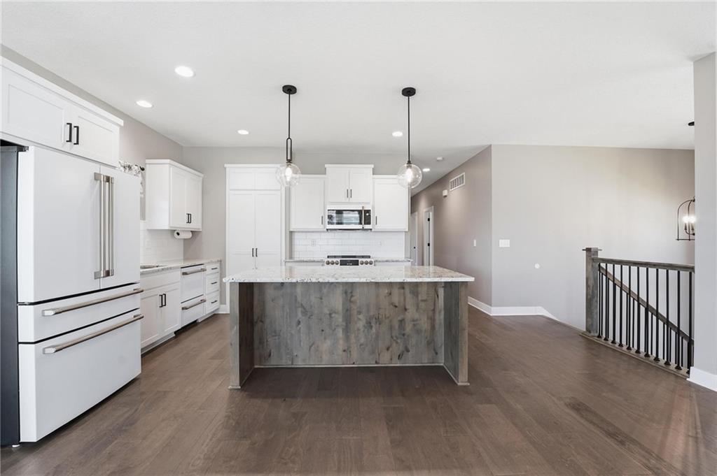 This stunning home welcomes you with an inviting open concept layout featuring beautiful hardwood floors that flow seamlessly through the kitchen, dining, and living areas. The kitchen is a standout with brand new $10,000 Café appliances, including a refrigerator, stove, microwave, and dishwasher, along with quartz countertops, a spacious center island with bar seating, tons of cabinetry, and a generously sized walk-in pantry. The washer and dryer are also included for added convenience, making this home completely move in ready. Natural light and tall ceilings create a bright and welcoming feel throughout. Just off the dining area, you’ll find a covered deck that’s perfect for relaxing or entertaining. The primary suite offers comfortable space along with a walk-in closet, double vanities, and a walk-in shower. Downstairs, the finished lower level provides a large rec room and a full bathroom, offering plenty of additional living space. Fenced in yard. HUGE three car garage with tons of additional storage space. This home has so much to offer, you won’t want to miss it!