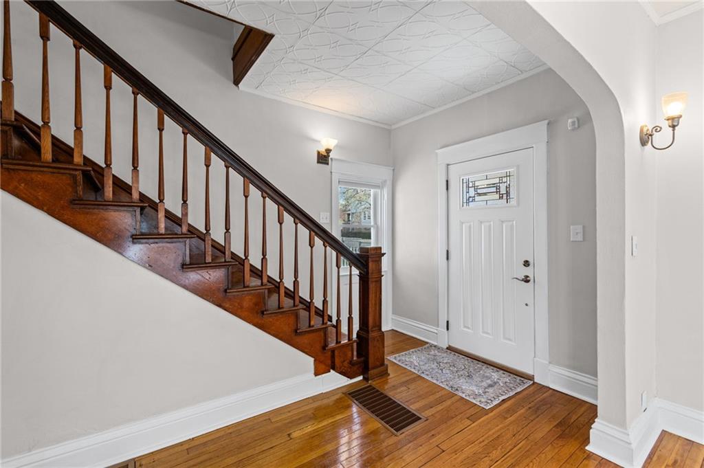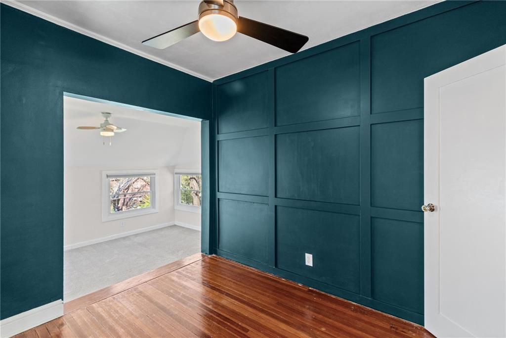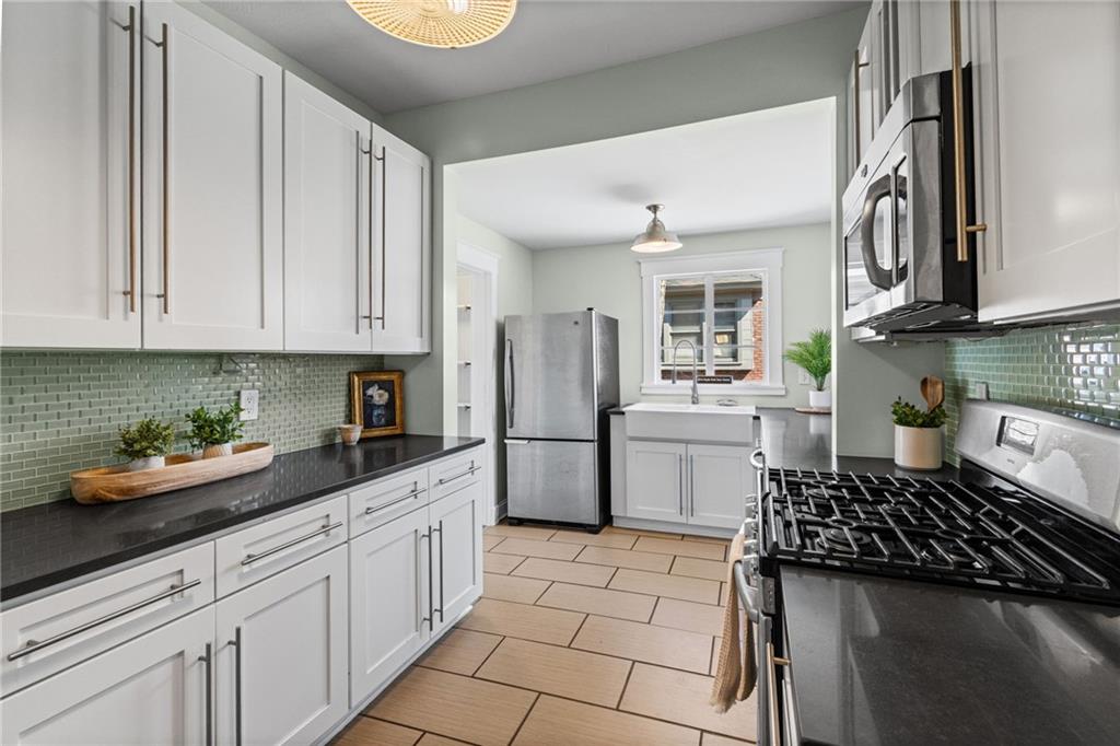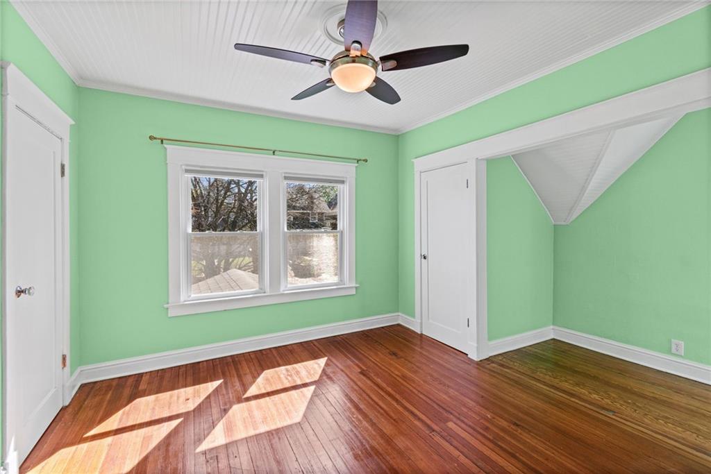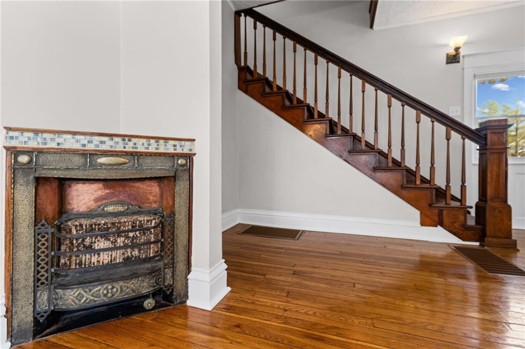 Hyde Park South gem blending historic elegance with modern comfort! Inviting front porch features a bench swing to enjoy the seasons. Hardwoods take you through the generous living and dining areas showcasing abundant natural light. Rear of home provides a full bathroom, and a bonus main level bedroom that could also work well as an office or TV room. Updated kitchen offers granite countertops, ample cabinetry, soft close drawers, farm sink, SS appliances, and walkthrough food pantry with additional back deck entry. Take the original classic stained staircase up to the upper level. Front bedroom showcases a beautiful beadboard ceiling, lively walls, hardwood floors and two walk-in closets. Primary Bedroom of your dreams. With a sitting room and ample closet, it offers plenty of space to feel at ease. Laundry room with plenty of storage space and a 2nd full bath completes the second level. Basement ideal for your storage needs. Step outside to a private backyard made for relaxing, gardening or hosting family and friends. Oversized deck with the perfect sunset view and space for your BBQ masterpieces. Plenty off-street parking with its sizable drive. Plus, a new roof and fresh exterior paint! Just minutes from Gillham Park, the Plaza, Midtown, museums, & local restaurants and shopping. Don't miss the chance to own in one of KC's most desirable historic neighborhoods!